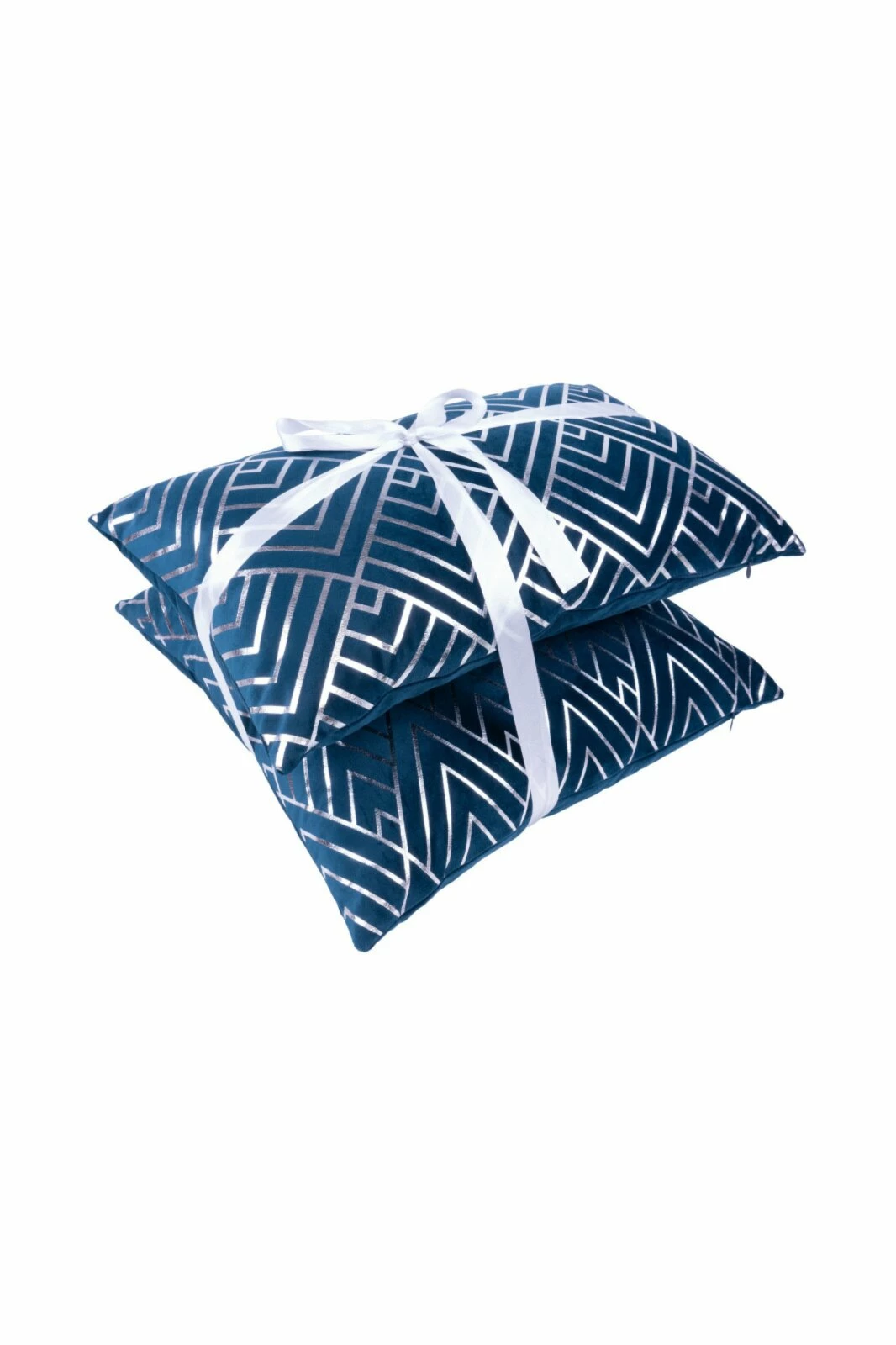 2er-Set Dekokissen – blau-silber – 30×50 cm – 45×45 cm
