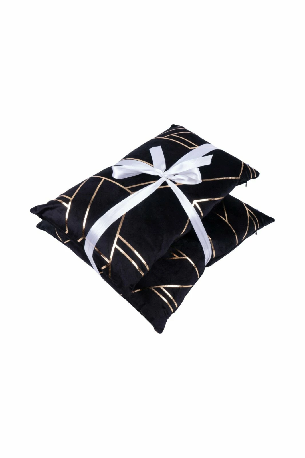 2er-Set Dekokissen – schwarz-gold – 30×50 cm – 45×45 cm