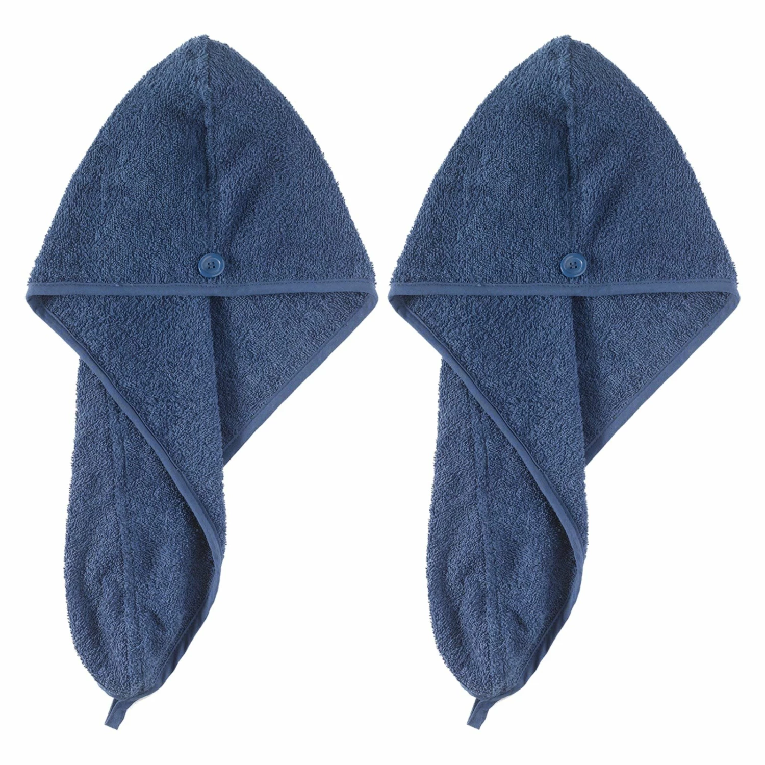 Dieses 2-teilige Set Haar-Turbane eignet sich hervorragend für einen entspannten Bade- oder Wellnesstag. Die Haare in den Turban wickeln, einfach durch einen Knopf verschließen und schon trocknen Ihre Haare im Handumdrehen.