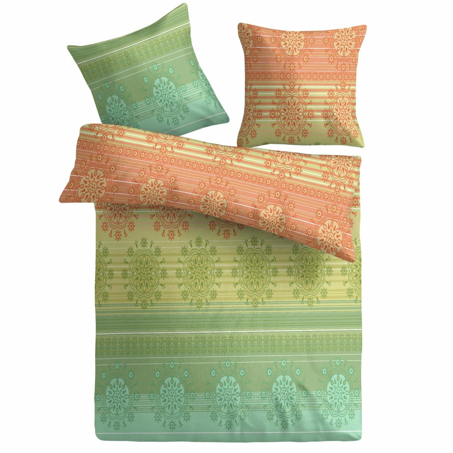 Baumwoll-Bettwäsche – grün-gelb-orange – 135×200 cm