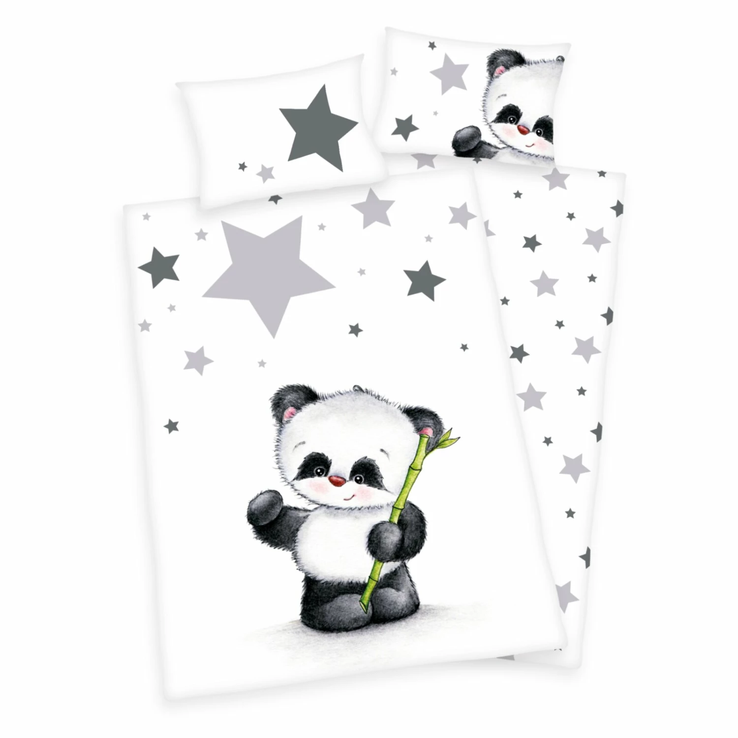Baumwoll-Bettwäsche JANA PANDA – weiß-grau – 100×135 cm