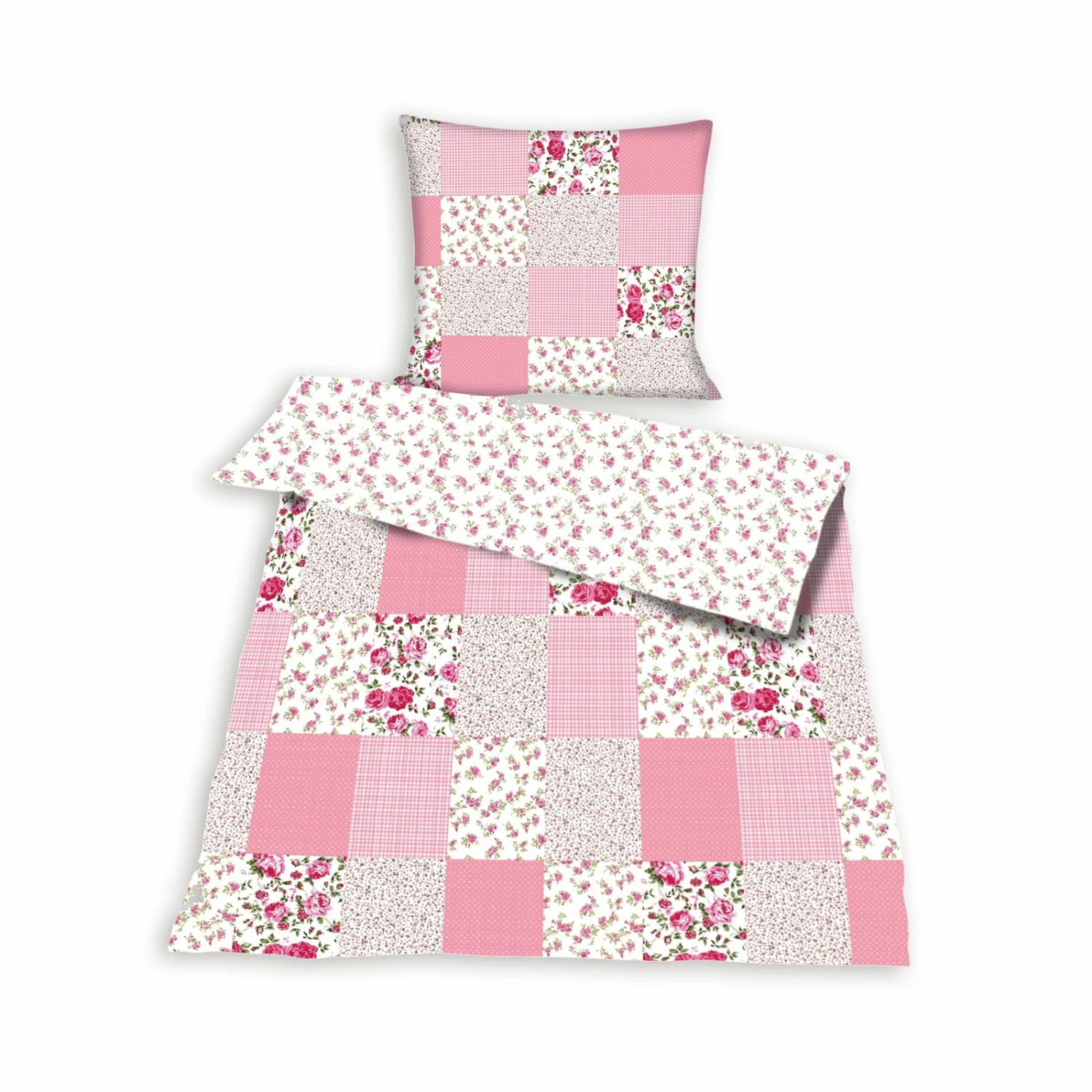 Baumwoll-Bettwäsche – rosa – Patchwork Rose – 135×200 cm