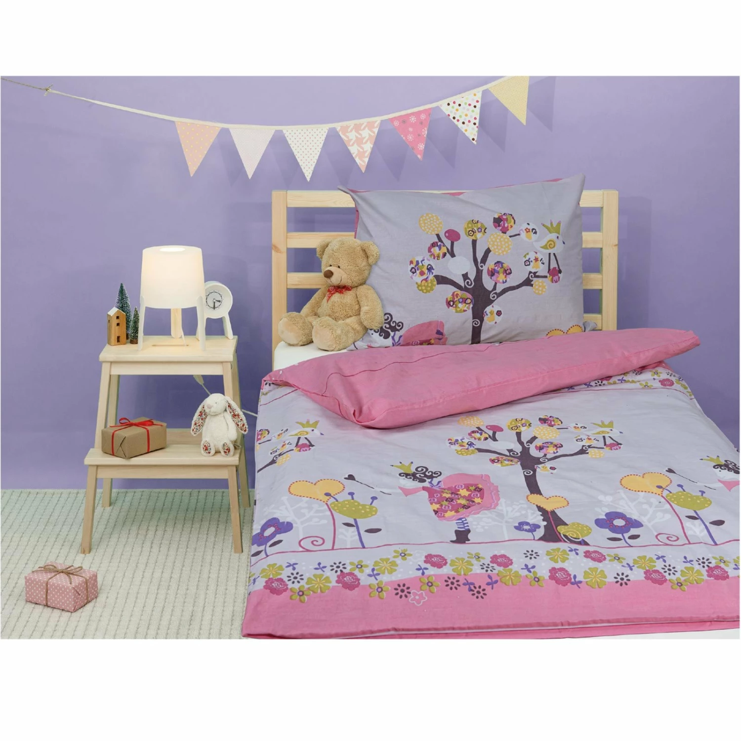 Baumwoll-Kinderbettwäsche – pink-flieder – 100×135 cm