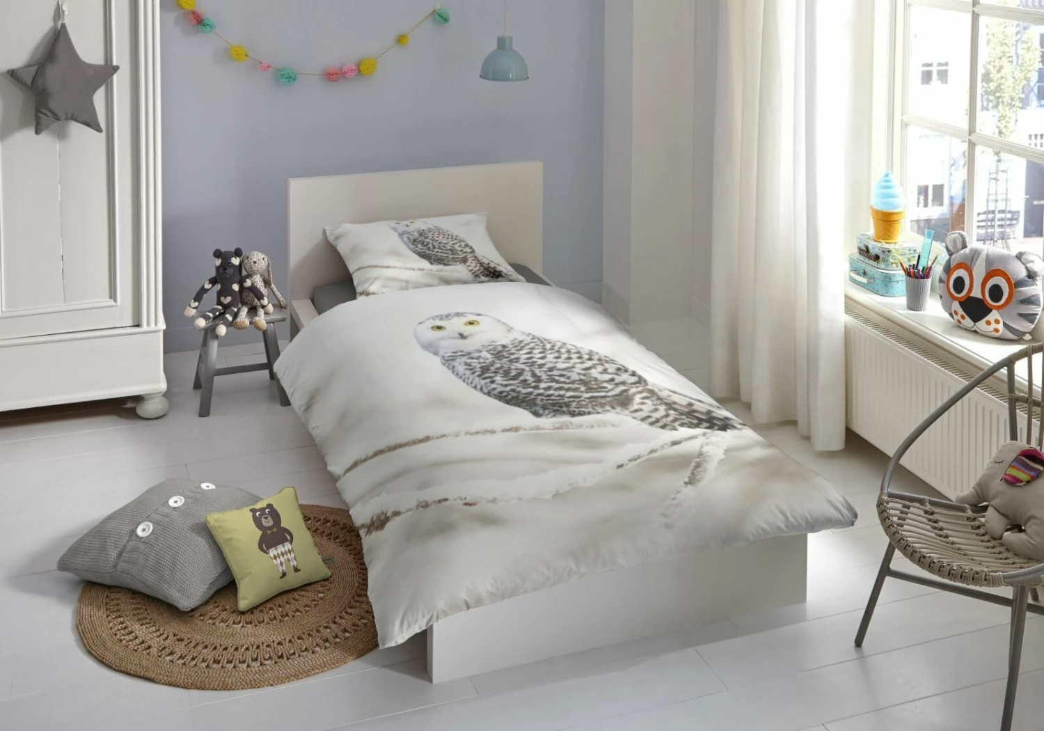 Biber-Bettwäsche – Eule – grau – 135×200 cm