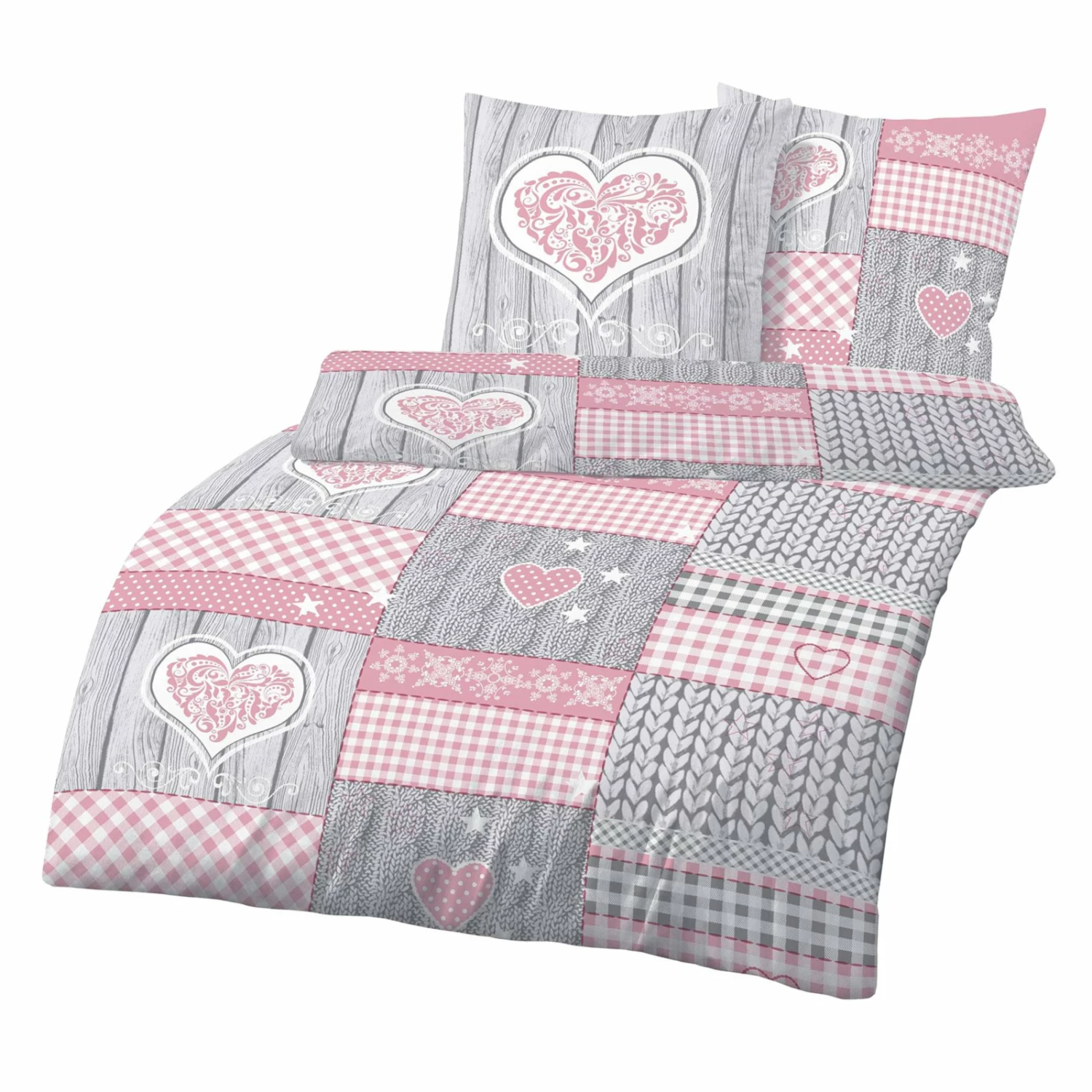 Biber-Bettwäsche – rosa-grau – 135×200 cm