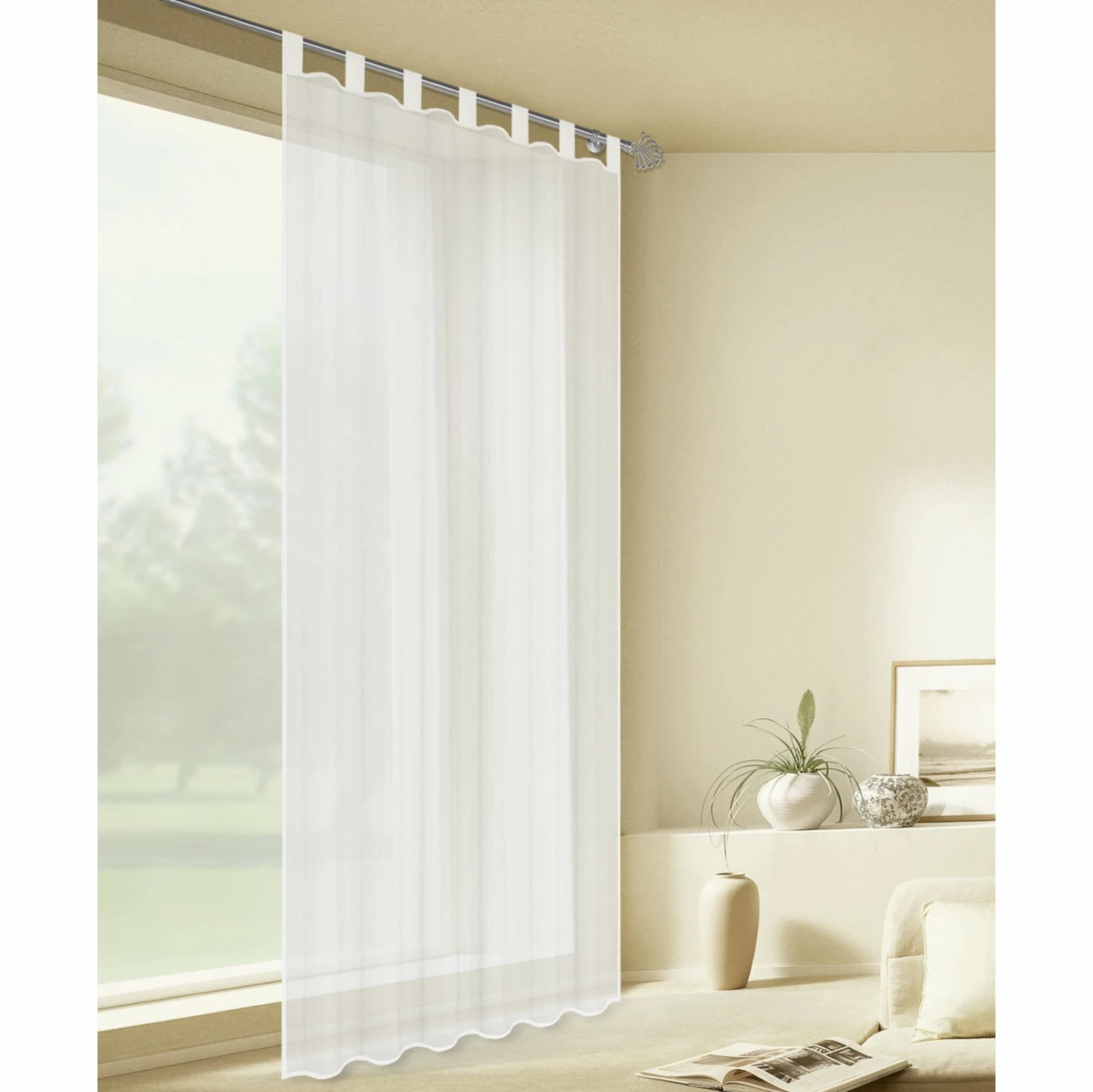 Dieser schöne Schlaufenschal in der Farbe Weiß ist ein echter Blickfang. Der schillernde und recht transparente Organza Stoff sieht einfach nur fabelhaft schön aus und zaubert eine lebendinge und frische Atmosphäre in Ihre Wohnung. Er wirkt durch seine Feinheit unaufdringlich schön, leicht und elegant zugleich.