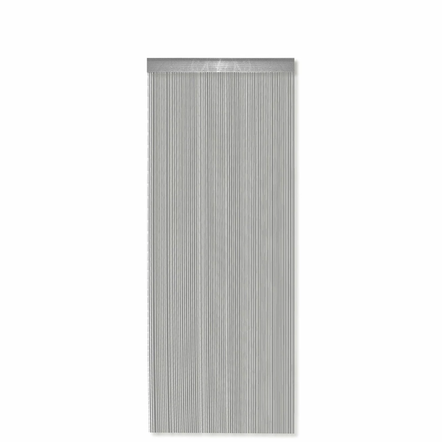 Silberfarbener Fadenvorhang aus pflegeleichtem Polyester. Dieser 90 cm breite und 245 cm lange Vorhang ist kürzbar und wirkt sehr modern.