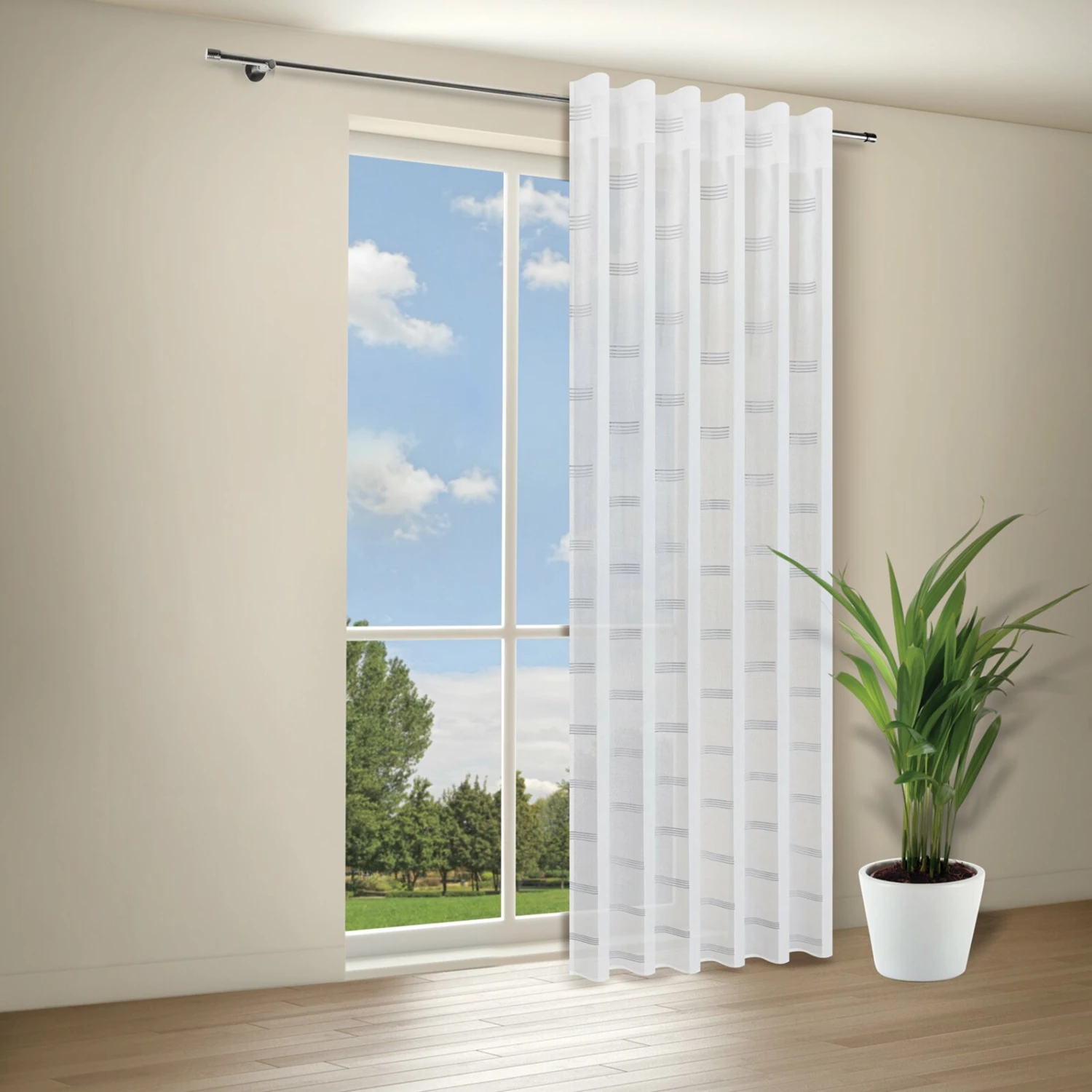 Mit diesem Fertigschal holst du dir moderne Akzente in dein Zuhause. Er ist mit graphischen Quadraten bedruck und transparent, damit Licht in deine vier Wände gelangen kann. Zudem ist der Schal mit einem Kräuselband ausgestattet und kann somit leicht an unterschiedliche Gardinenschienen angebracht werden.
