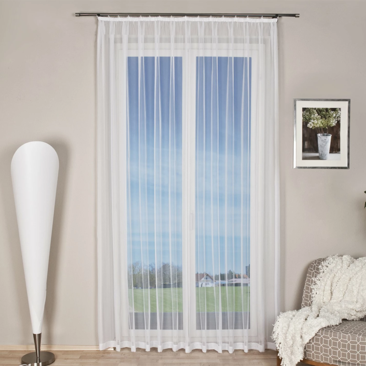 Ohne Gardine wirkt ein Fenster irgendwie leer. Sie möchten es aber schlicht halten? Dann ist diese Gardine genau die richtige – schlicht und dezent, ohne Stickerei und in Weiß. Sie ist transparent, so dass das Licht weiterhin den Raum durchfluten kann, und setzt so einen gemütlichen Akzent.