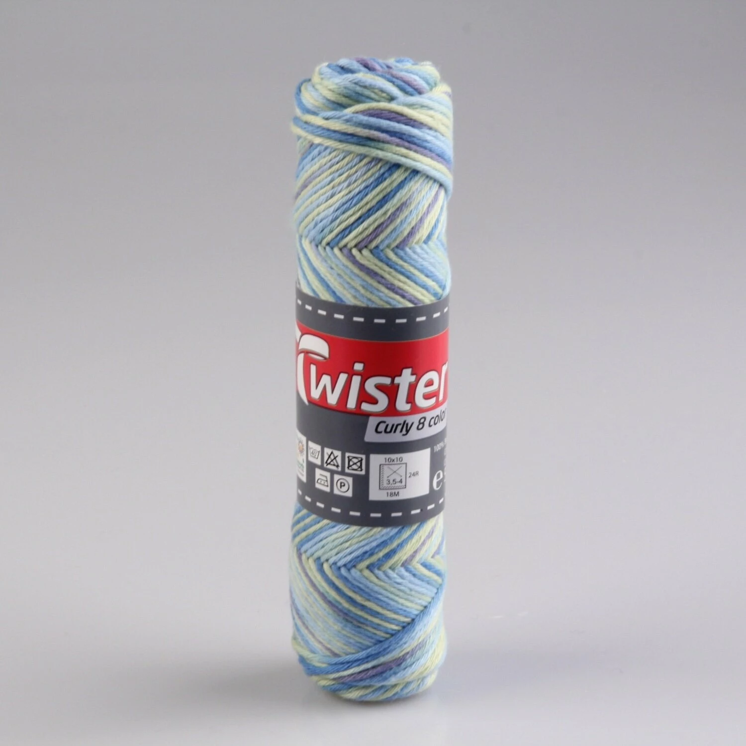 Häkelgarn TWISTER CURLY – hellgrün-türkis-hellblau – 50g