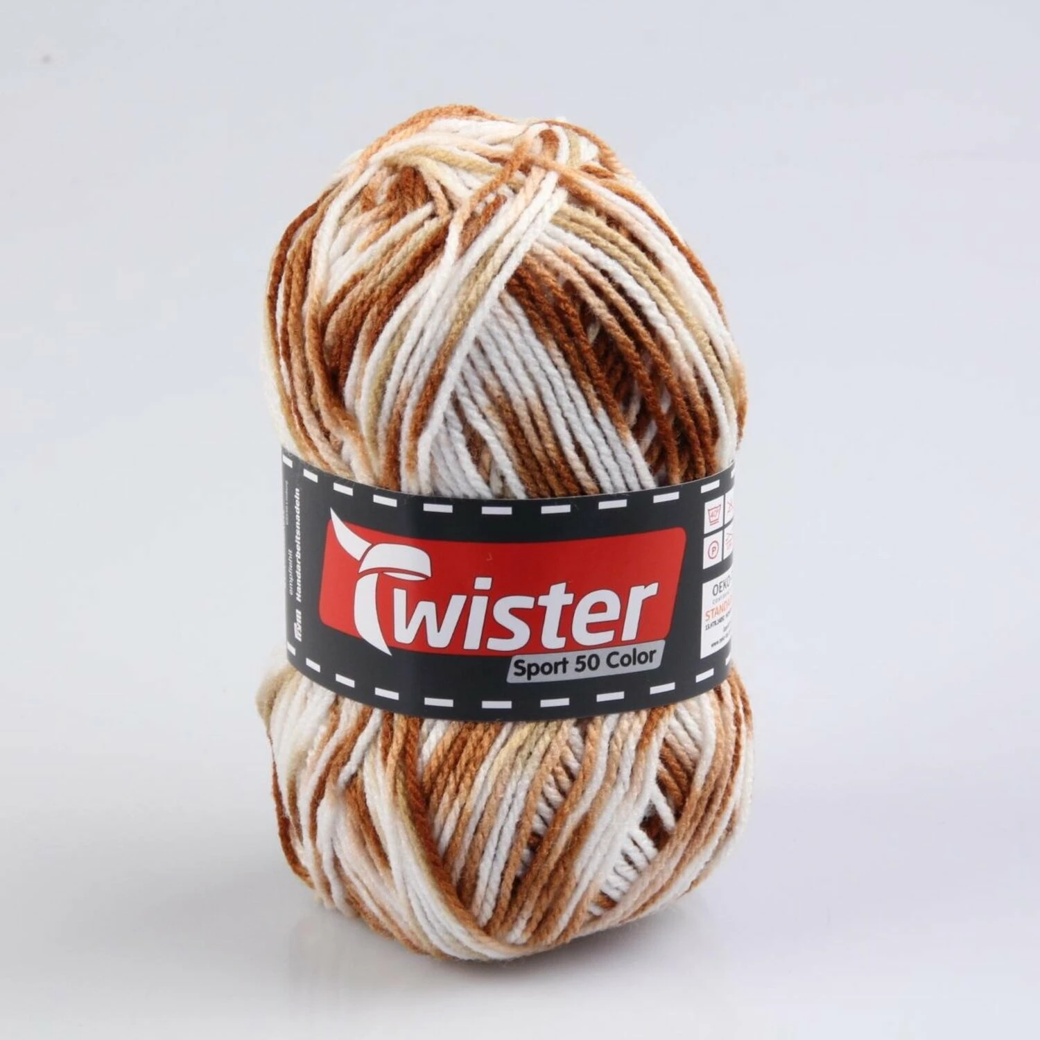 Häkelgarn TWISTER SPORT – weiß-camel-braun – 50g