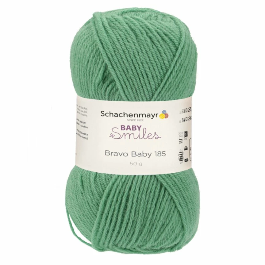Den beliebten Klassiker Bravo bieten wir jetzt auch in der Baby-Smiles Kollektion an. Dadurch, dass Baby Smiles Bravo mit einer Lauflänge von ca. 185m pro 50g kommt, bietet es sich ideal für feinere Strick- und Häkelarbeiten an. Nichtsdestotrotz fühlt sich der Stoff weich an und der Grün-Ton ist auch ein echter Hingucker.