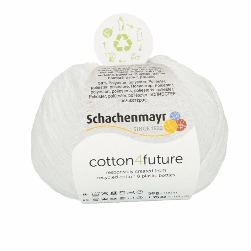 Dieses Cotton 4future Garn ist eine Mischung aus Baumwoll- und Polyestergarn. Das Garn in White wird aus recycelter Baumwolle und recyceltem Polyester hergestellt. Die recycelte Baumwolle stammt aus Resten der Textilproduktion und das recycelte Polyester stammt aus recycelten Plastikflaschen. Genießen und erleben Sie Ihre verantwortungsvolle Kreativität.