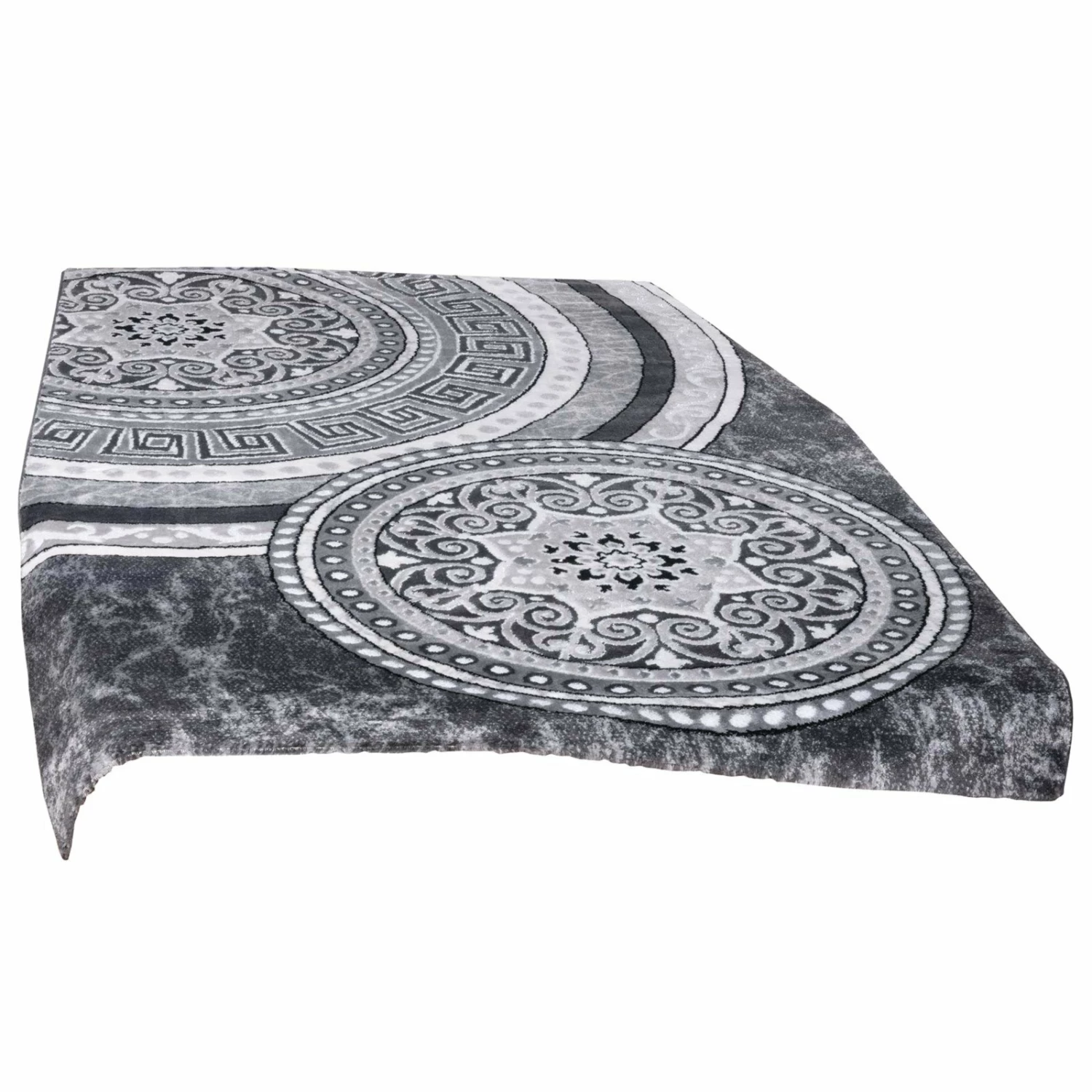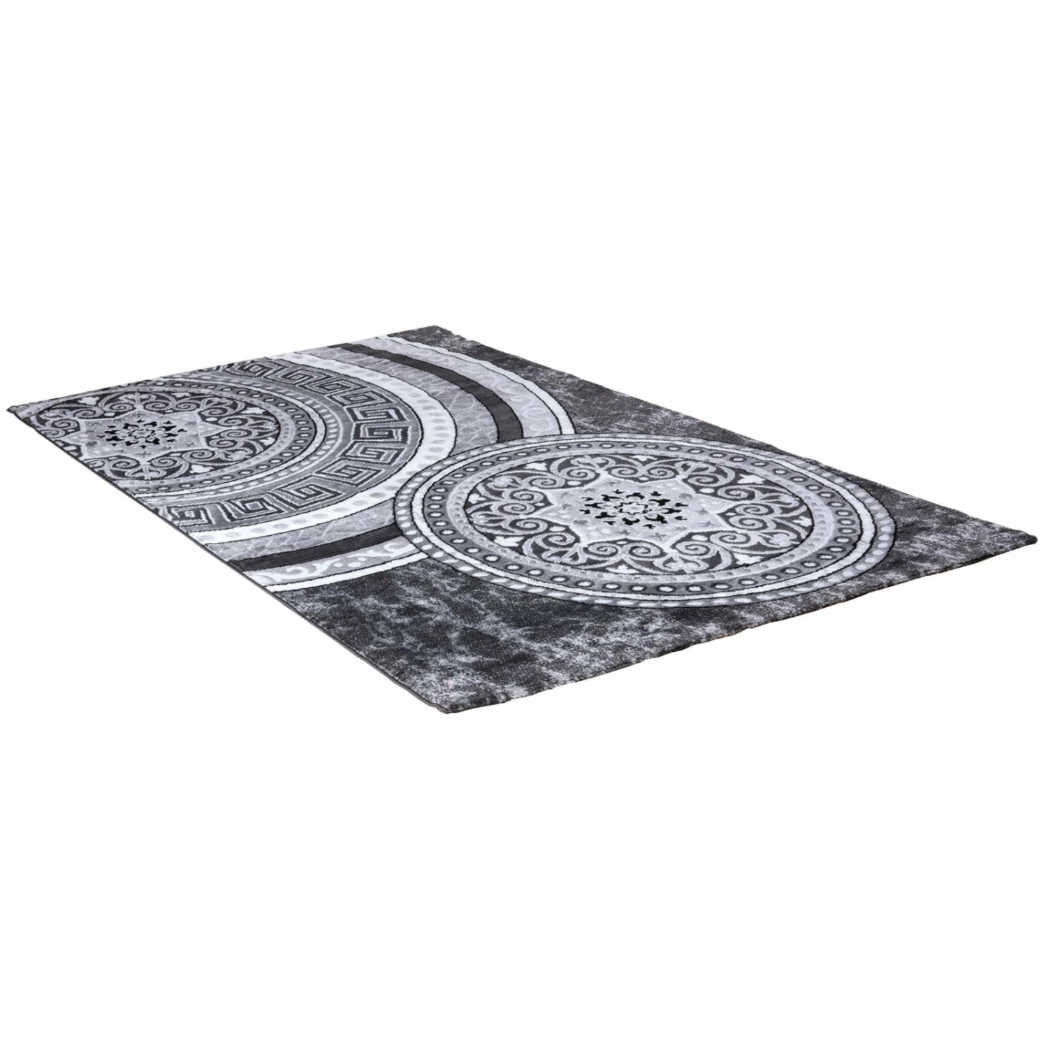 Der Teppich mit grauen Ornamenten ist ein absolut stilvoller und wunderschöner Blickfang für jeden Wohnraum. Die ausgefallenen Kreis-Muster wirken sehr elegant und verleihen jedem Raum das gewisse Etwas. Die Maße des Teppichs betragen etwa 80 x 150 Zentimeter.
