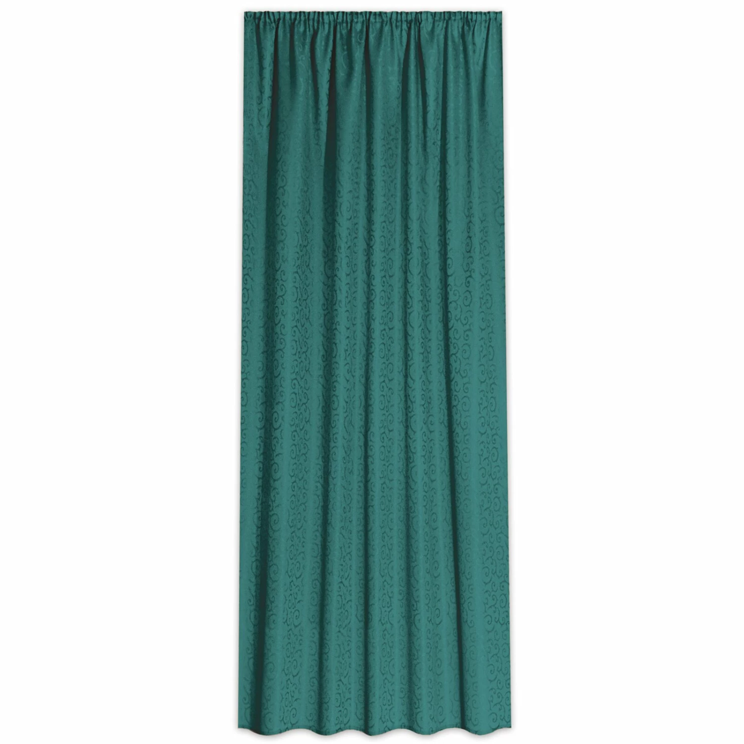 Blickdichter Vorhang mit Jacquardmuster und Gardinenband als Aufhängung. Der tannengrüne Farbton wird für ein frisches Wohnambiente und Modernität sorgen.
