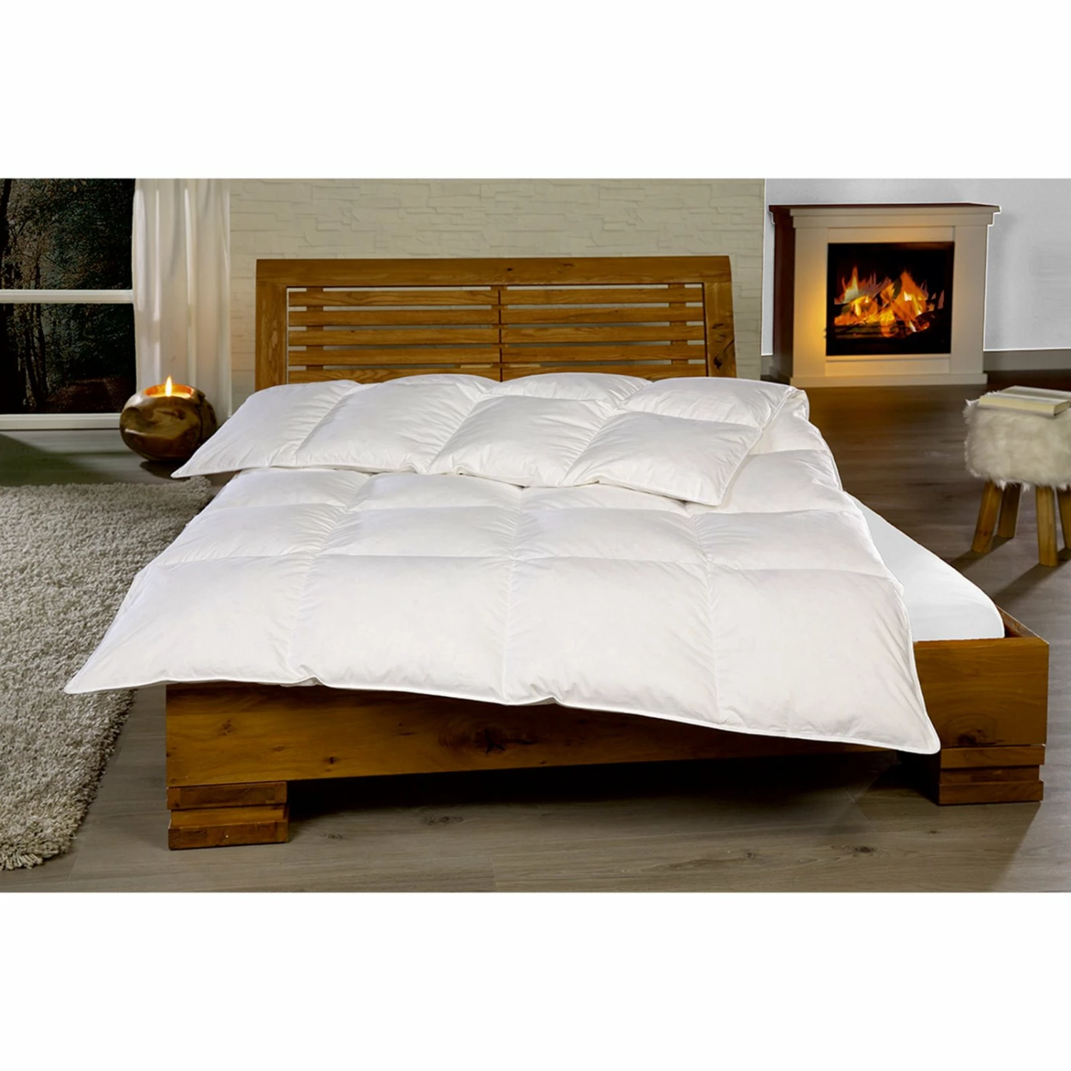 Herrlich wärmend ist diese kuschelige Daunendecke mit original kanadischen Federn und Daunen. Die praktischen Kassetten vermeiden das Verrrutschen der etwa 1000 Gramm schweren Füllung, sodass das Kuschel-Feeling immer garantiert ist. Sie haben die Möglichkeit, dieses Kassettenbett bis zu 40°C zu waschen und es im Trockner zu trocknen.