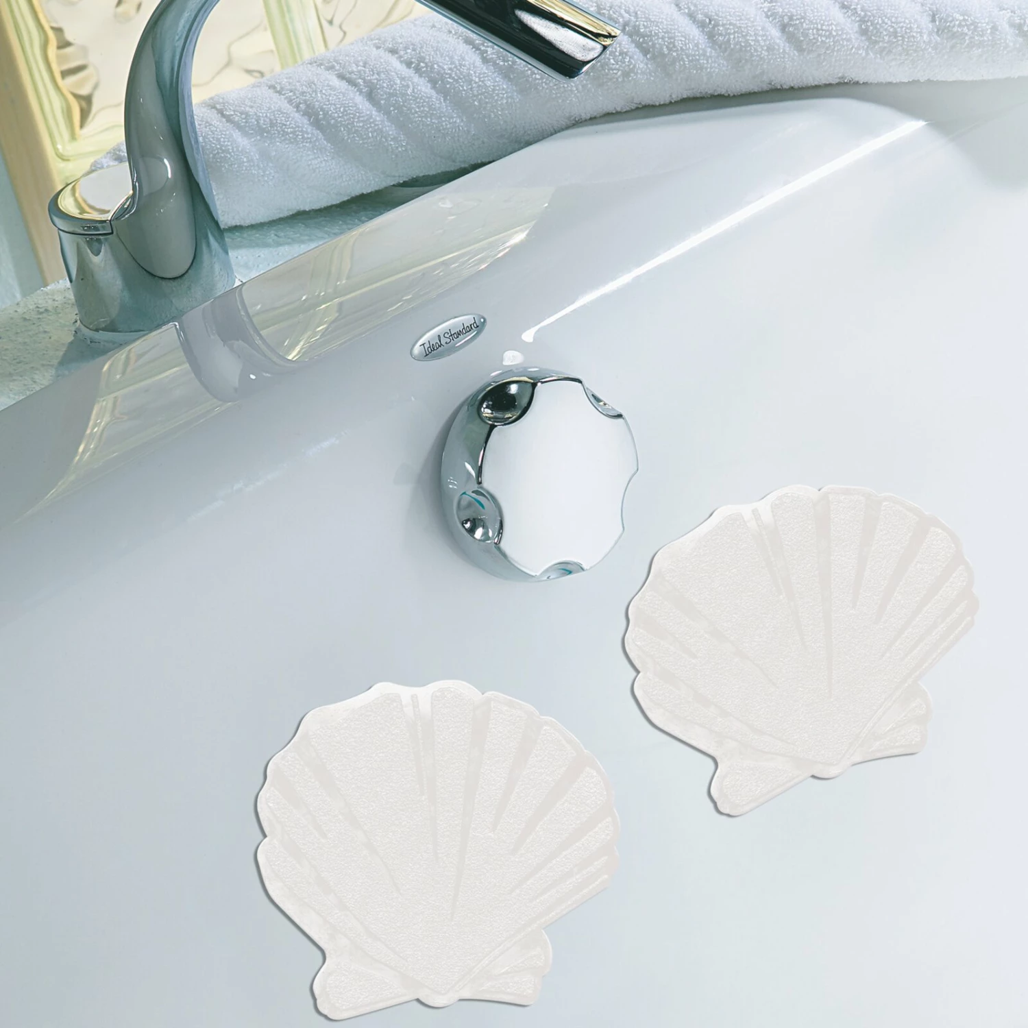 Die Badewanneneinlage in Schneeweiß wird mit Saugnäpfen befestigt. Sie strahlt durch das Muschel-Design ein maritimes Flair aus. Das Set besteht aus sechs Teilen, welche jeweils etwa 10 cm breit und 12 cm hoch sind.