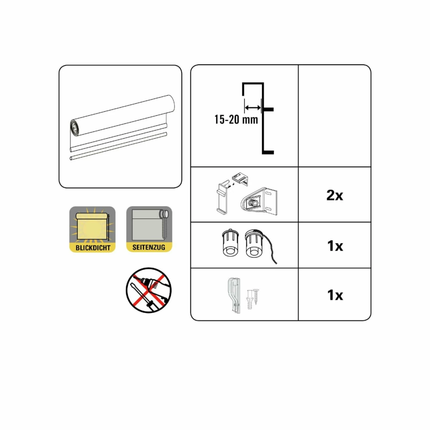- Rollo mit Montageschiene, Klemmträger