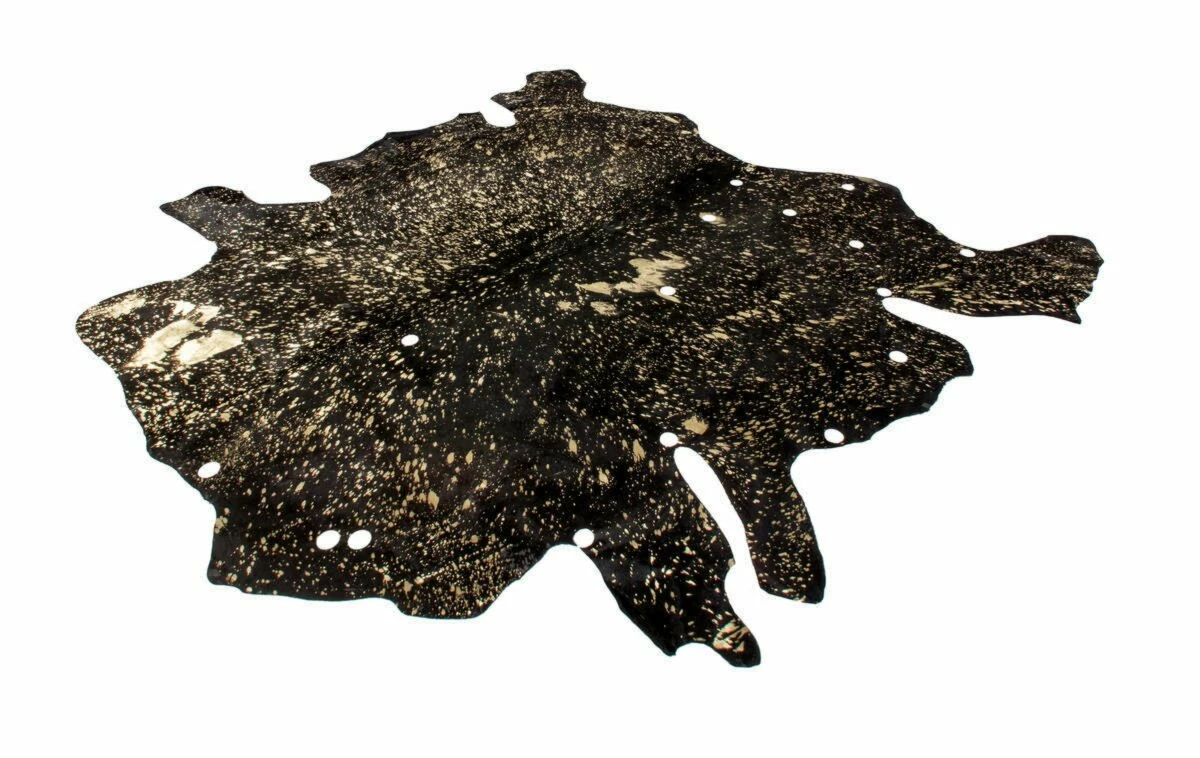 Kombinieren Sie diesen Lederteppich mit schlichter Einrichtung, Holz oder anderem Naturmaterial in Ihrem Raum, dann wird dieser ein echter Eyecatcher sein und ein luxuriöses Ambiente versprühen. Das gefärbte Rindsleder und die aufgedruckten Folienelemente in Gold unterstreichen noch die Eleganz von diesem wundervollen Wohnaccessoire. Gleichzeitig schaffen Sie sich mit diesem edlen Teppich ein sehr wohnliches Ambiente in Ihren vier Wänden. Er ist pflegeleicht und auch für die Fußbodenheizung geeignet. Sie können ihn ganz problemlos absaugen, ausklopfen oder feucht abwischen. Bei echtem Rindslederfell handelt es sich um ein Naturprodukt, sodass es in Farbe und Beschaffenheit des Fells zu Abweichungen kommen kann. Dadurch ist jeder Teppich ein einzigartiges Unikat, da keine zwei Felle identisch sind. Gegebenenfalls kann das natürliche Fell nach einiger Zeit und bei hoher Beanspruchung an Haaren verlieren. Ebenso könnte sich die Metallicfolie an einigen Stellen ablösen. Dies ist der natürlichen Beschaffenheit des Materials geschuldet und kein Produktionsfehler oder Qualitätsmangel.