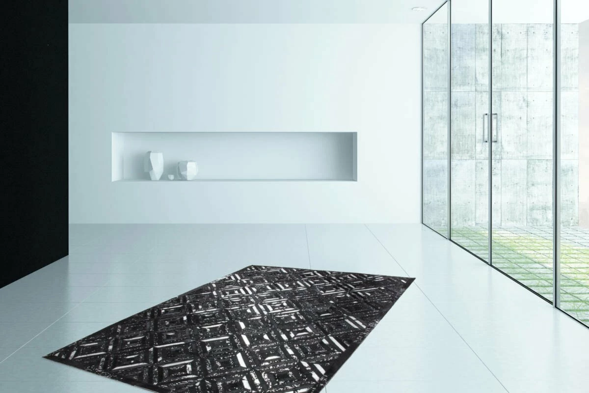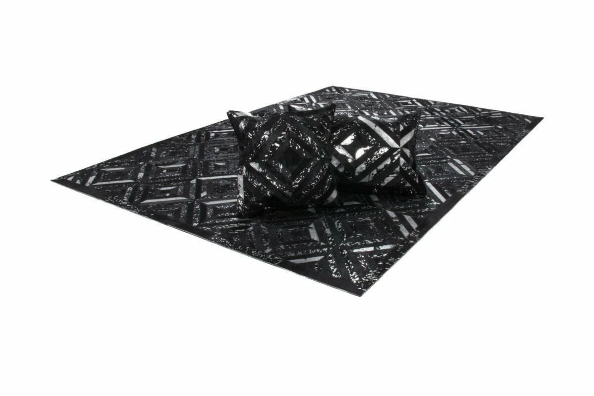 Der wunderschöne Lederteppich mit eingearbeiteten Applikationen aus metallischer Folie rundet jeden edlen Einrichtungsstil gekonnt ab. Der hochwertige Edel-Teppich aus 100 % Leder überträgt einen individuellen Touch auf seine Umgebung und erzeugt ein ganz besonderes Flair. Von Hand gefertigt ist jeder einzelne Lederteppich ein Unikat. Die Verwendung von edlen Naturmaterialien und die hochwertige Verarbeitung sorgen für ein dynamisches Aussehen und machen jeden Teppich einzigartig, denn bei Naturprodukten kann es in Form, Farbe und Muster zu Abweichungen von bis zu 30 % kommen. Das natürliche Fell kann nach einiger Zeit und bei hoher Beanspruchung gegebenenfalls an Haaren verlieren. Ebenso könnte sich die Metallicfolie unter Umständen ablösen. Dies ist dem Naturprodukt und der Beschaffenheit des Fells geschuldet und kein Produktionsfehler.Setzen Sie ein Statement mit diesem Lederteppich und machen Sie ihn mit seinen kontrastreichen Farben zum Blickfang in Ihren vier Wänden. Er eignet sich für alle Räumlichkeiten – ob Wohnzimmer, Schlafzimmer, Diele oder Esszimmer. Das moderne filigrane Rautenmuster verleiht dem Produkt eine ganz besondere Note und kommt in Kombination mit verschiedenen Möbeln gut zur Geltung. Naturfaser-Teppiche fangen Fusselwolken ein und sind daher besonders gut für Allergiker geeignet, da sie gleich abgesaugt werden können. Der extra bequeme Lederteppich ist ein Alleskönner, der sowohl durch seine Optik als auch durch seine Haptik überzeugt.Das strapazierfähige Material macht die schwere Qualität des Teppichs aus, ist äußerst langlebig und pflegeleicht. Für einen spürbaren Wohlfühl-Effekt sorgt dabei die wärmeisolierende Eigenschaft des Leders. Verleihen Sie Ihren Räumen das gewisse Etwas und schaffen Sie Ihre eigene Relax-Insel in verschiedenen Nuancen. Selbst die kleinste Wohnung lässt sich mit diesem wundervollen Naturteppich persönlich einrichten, denn er ist in verschiedenen Größen erhältlich.