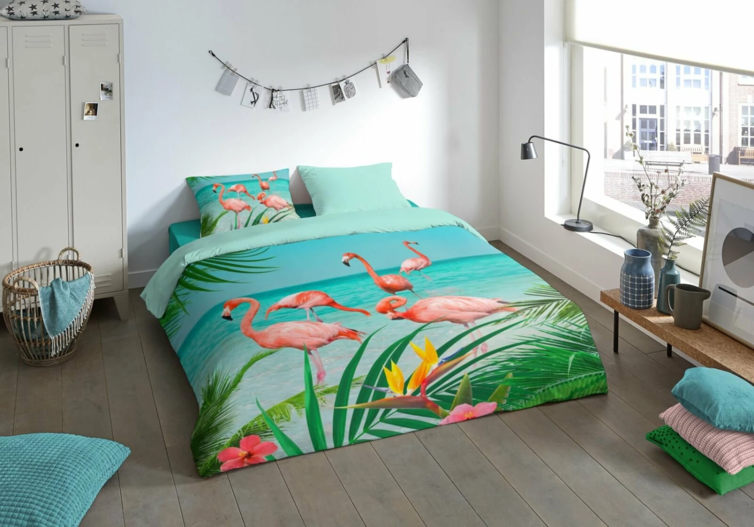 Microfaser-Bettwäsche – türkis – Flamingo – 135×200 cm