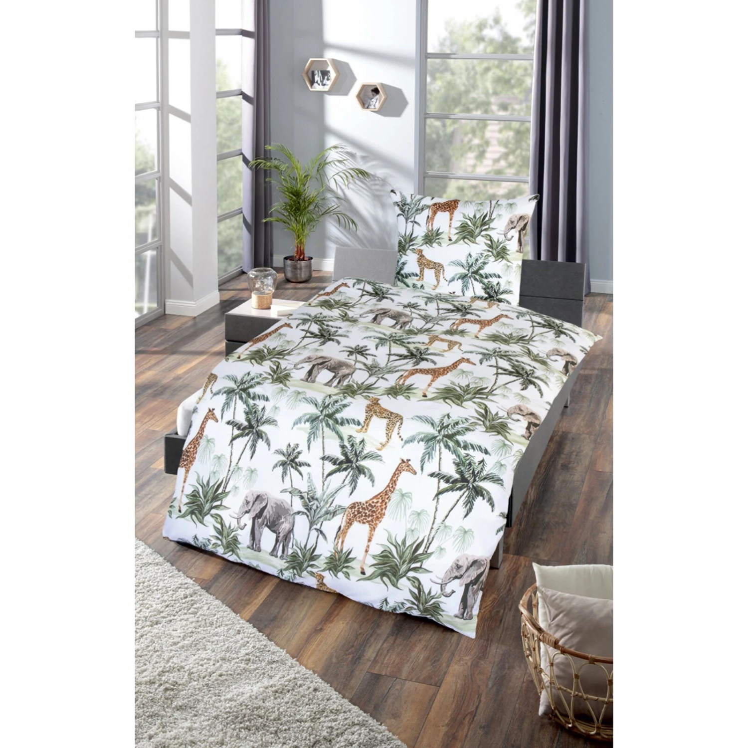 Das afrikanische Muster bringt frischen Wind in Ihrem Schlafbereich. Im zweiteiligen Set ist ein Decken- und ein Kopfkissenbezug enthalten, die beide mit einem praktischen Reißverschluss ausgestattet sind. Microfaser-Bettwäsche ist für jede Jahreszeit geeignet, da sie im Sommer kühlt und im Winter wärmend wirkt. Sie ist zudem sehr angenehm auf der Haut.