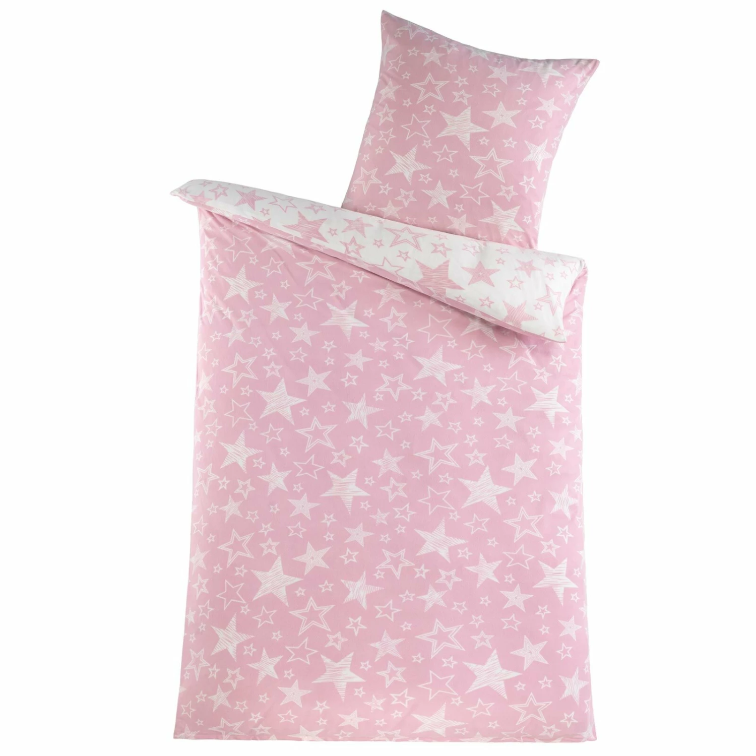 Die Microfaser-Flausch-Bettwäsche ist mit einem Sternen-Motiv versehen und sehr hübsch anzusehen. Die eine Seite ist in Pink und die andere Seite ist in Weiß gehalten. Wenden Sie die Decke so, wie es Ihnen am besten gefällt. Der Kissen- und der Deckenbezug sind mit je einem Reißverschluss ausgestattet und somit ist das Wechseln im Handumdrehen erledigt. Zu reinigen sind die Bezüge bis zu 60°C und in den Trockner können sie problemlos.