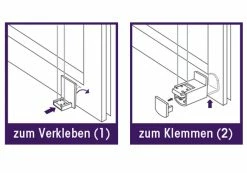 - Befestigungsart: klemmen (Fensterflügel) oder schrauben (Wand oder Decke)