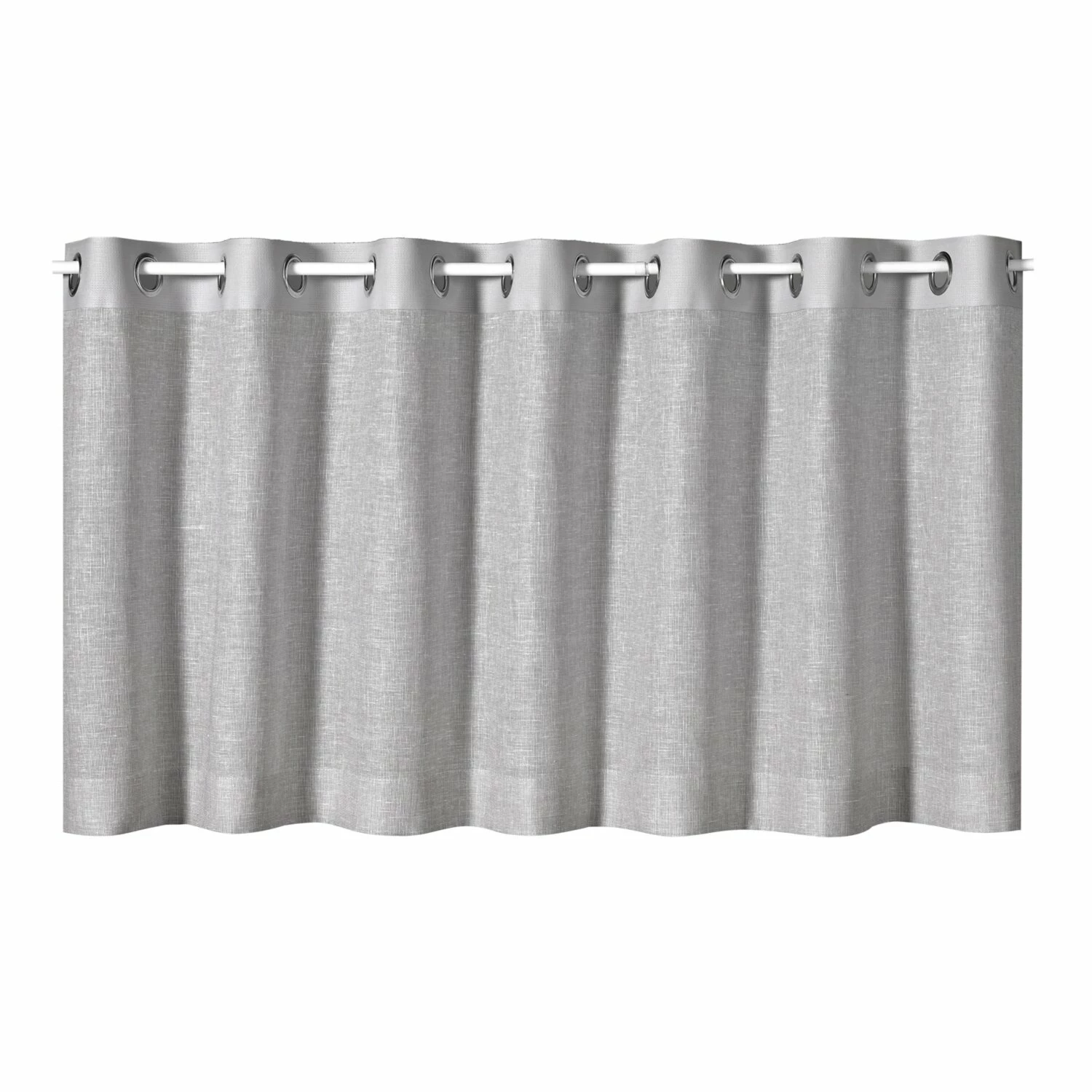 Ösenbistro überzeugt mit Ihrer Leinenoptik und in Grau. Diese moderne Bistrogardine ist besonders für kleine Fenster geeignet. Die Metallösen haben einen Innendurchmesser von 25 mm und passen ideal auf dünne Scheiben- und Vitragenstangen.