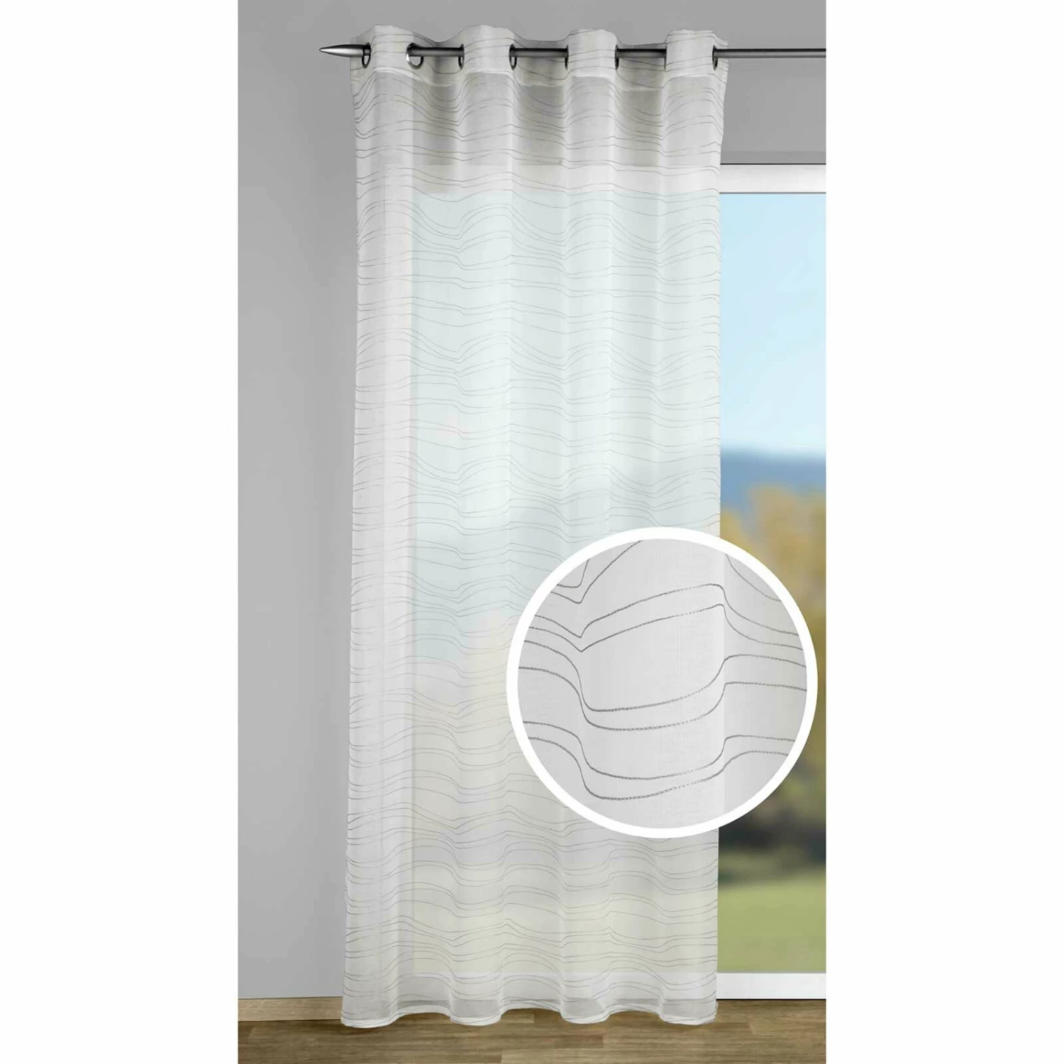 Der Ösenschal mit Linienmotiv in creme fügt sich dezent in Ihre Wohnumgebung ein, erfüllt aber mehr als ausreichend seinen Zweck. Der transparente Ösenschal ist waschbar bei 30 Grad und besteht zu 100% aus Polyester.