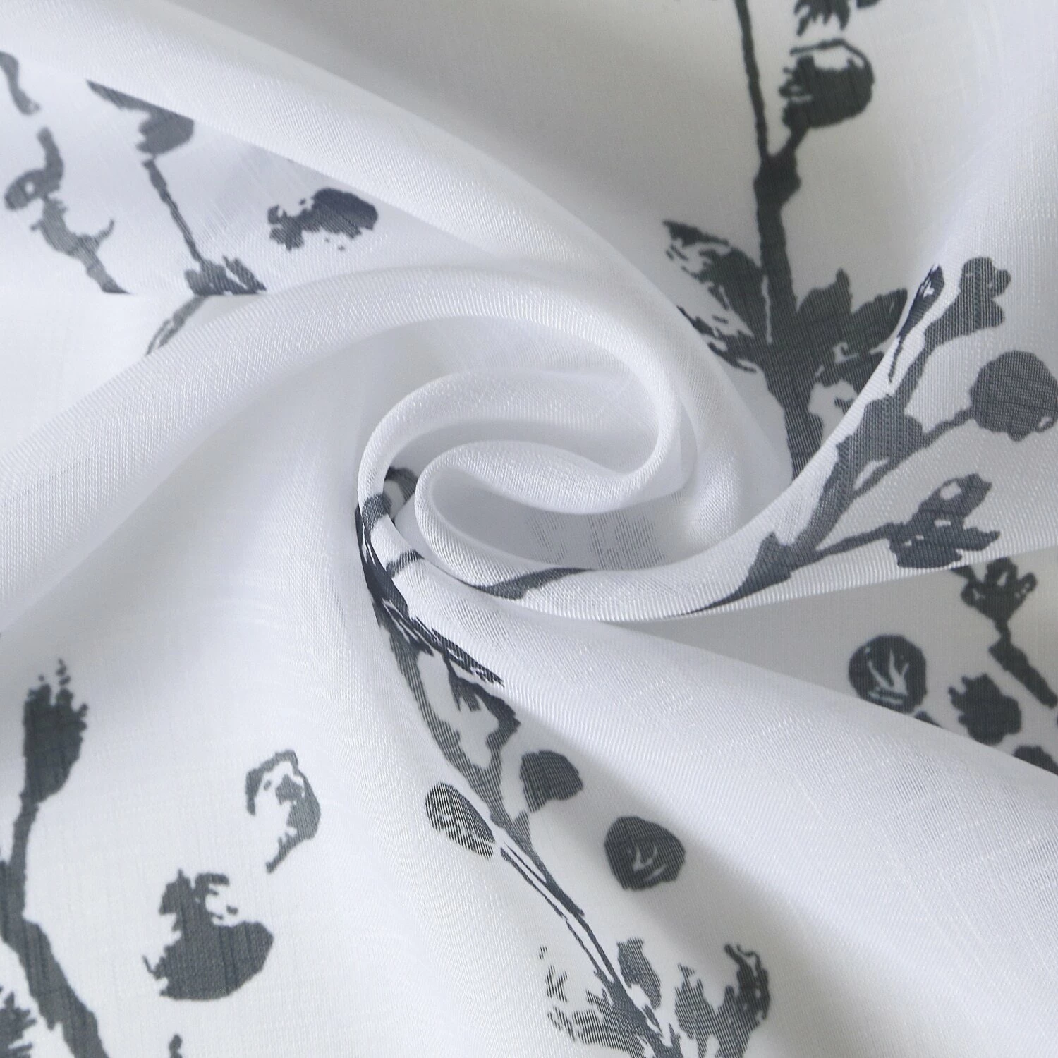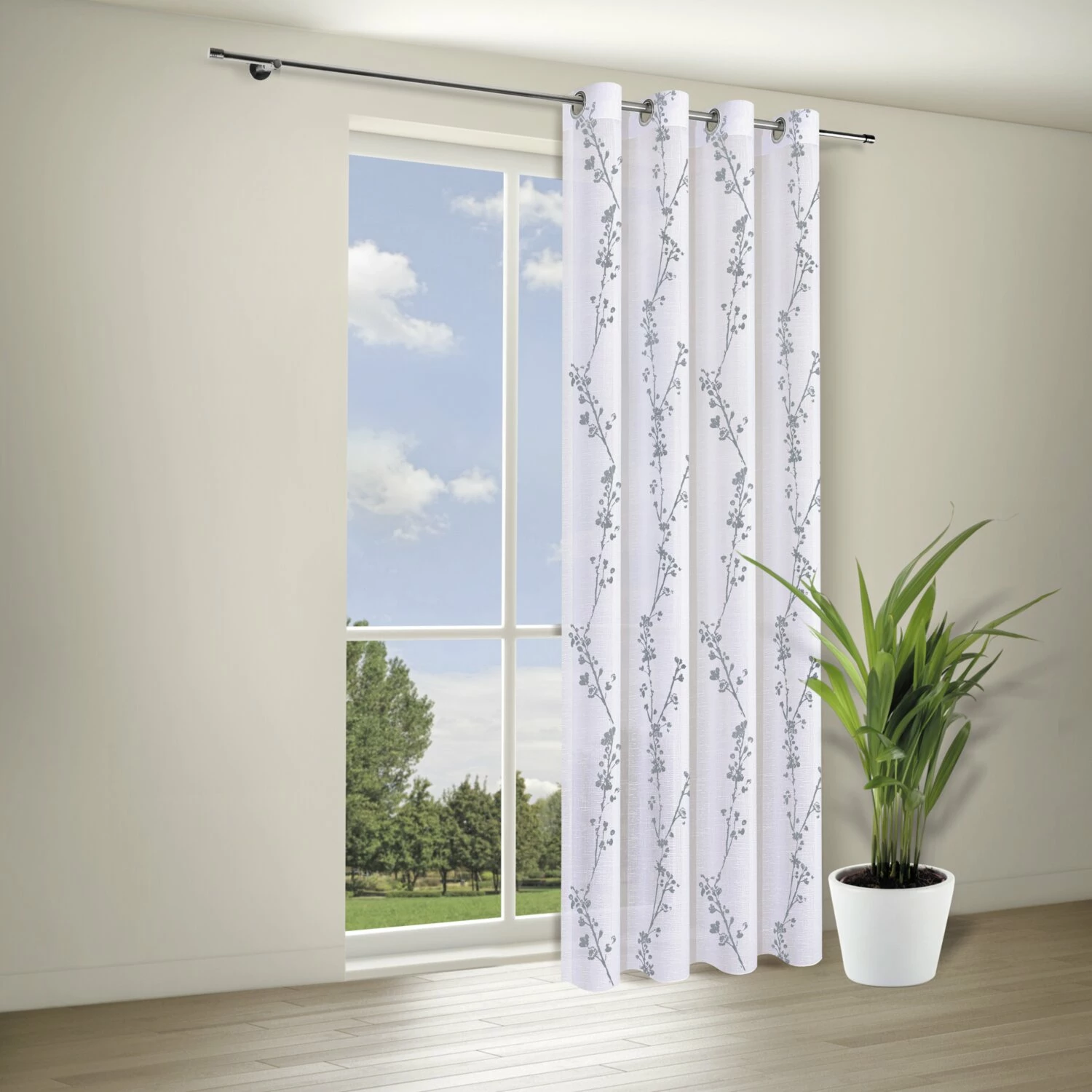 Ein wunderschöner Vorhang in Weiß, welcher mit anthrazitfarbenem Zweigenmuster bedruckt ist. Der Ösenschal ist besonders pflegeleicht und ist ein toller Akzent in jedem Wohnstil.