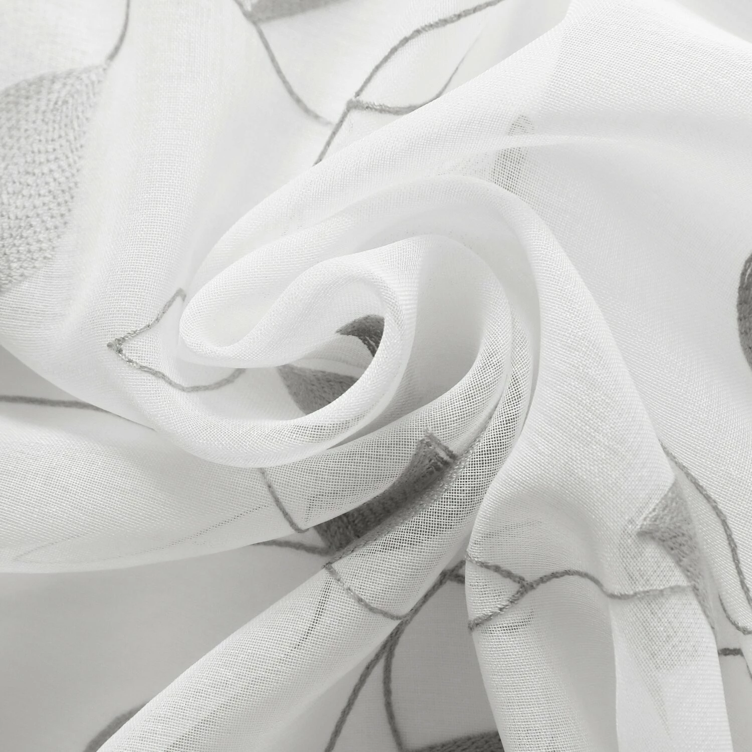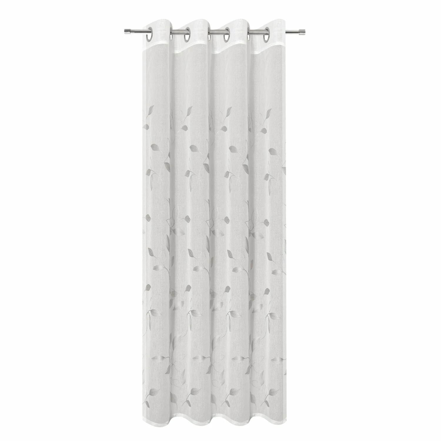 Wunderschöner Ösenschal in Weiß-Silber mit schönem Blättermotiv. Das pflegeleichte Polyester macht diesen Vorhang zu einer perfekten Wahl für jeden Wohnbereich.