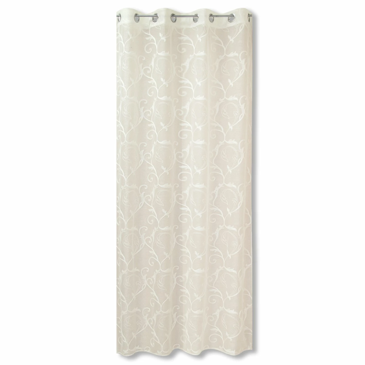 Mit wunderschöner Kordelstickerei präsentiert sich dieser tolle Ösenvorhang. Er wurde aus robustem und pflegeleichtem Polyester gefertigt und verleiht Ihren Räumlichkeiten ein stilvolles und gemütliches Ambiente.
