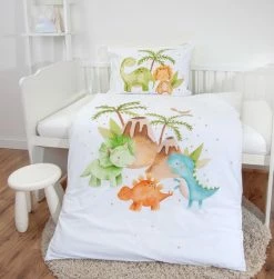 Kinderbettwäsche DINOS – weiß – grün – 100×135 cm