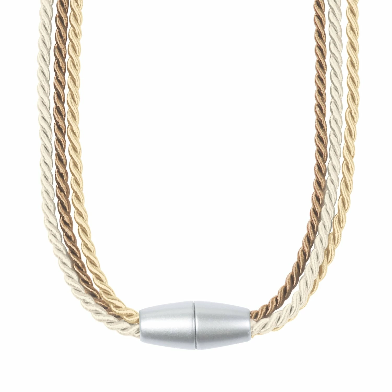 Der elegante Raffhalter, besteht aus drei Kordeln. Er wird ganz einfach durch einen Magnet verschlossen.