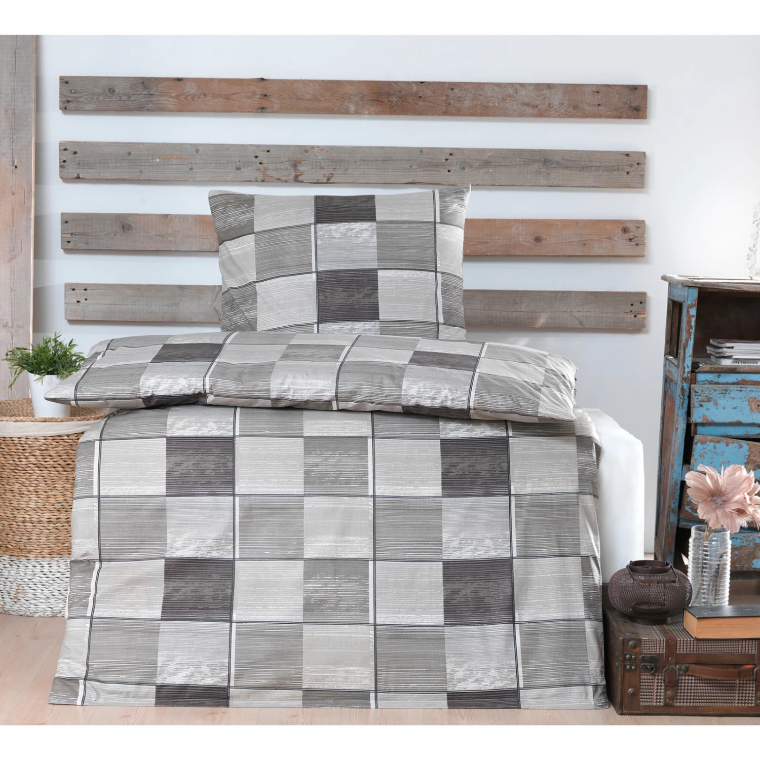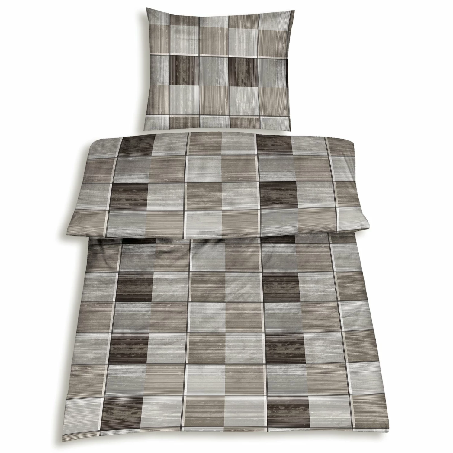 Renforcé-Bettwäsche – braun-grau – Karo – 135×200 cm