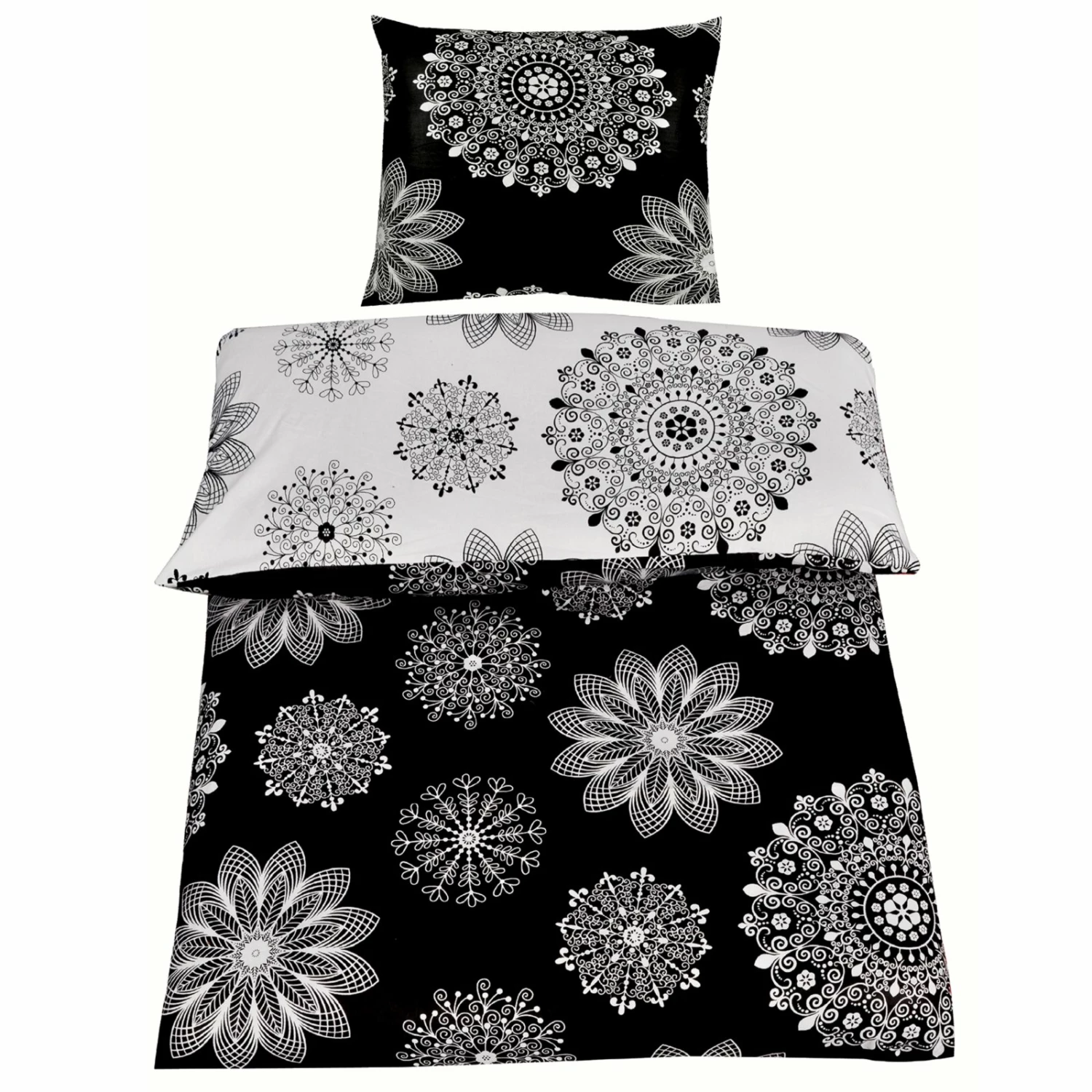 Weiche Renforcé-Bettwäsche mit schickem schwarz-weißen Mandala-Wendemuster aus angenehmem Baumwollmaterial. Durch den Reißverschluss lässt sich diese Bettwäsche schnell und einfach wechseln.