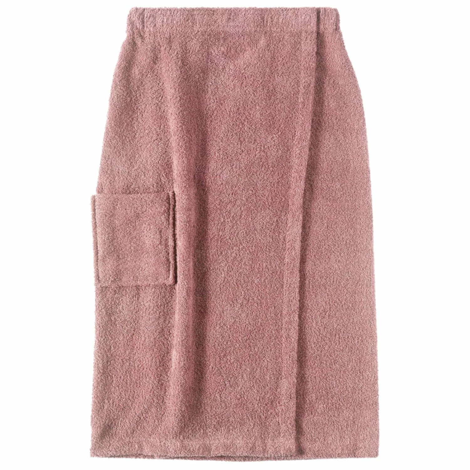 Praktischer Saunakilt in der Farbgebung Rosenholz. Er ist super praktisch für einen entspannten Saunagang, denn Sie haben stets ein Handtuch, aber auch eine Unterlage dabei. Der Kilt besteht aus 100% Baumwolle und ist somit weich und hautfreundlich.