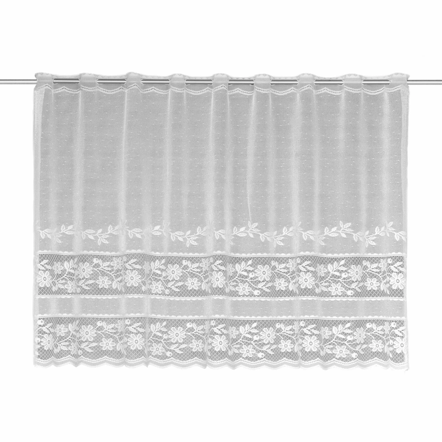 Scheibengardine – Blumenmuster – weiß – 140×75 cm