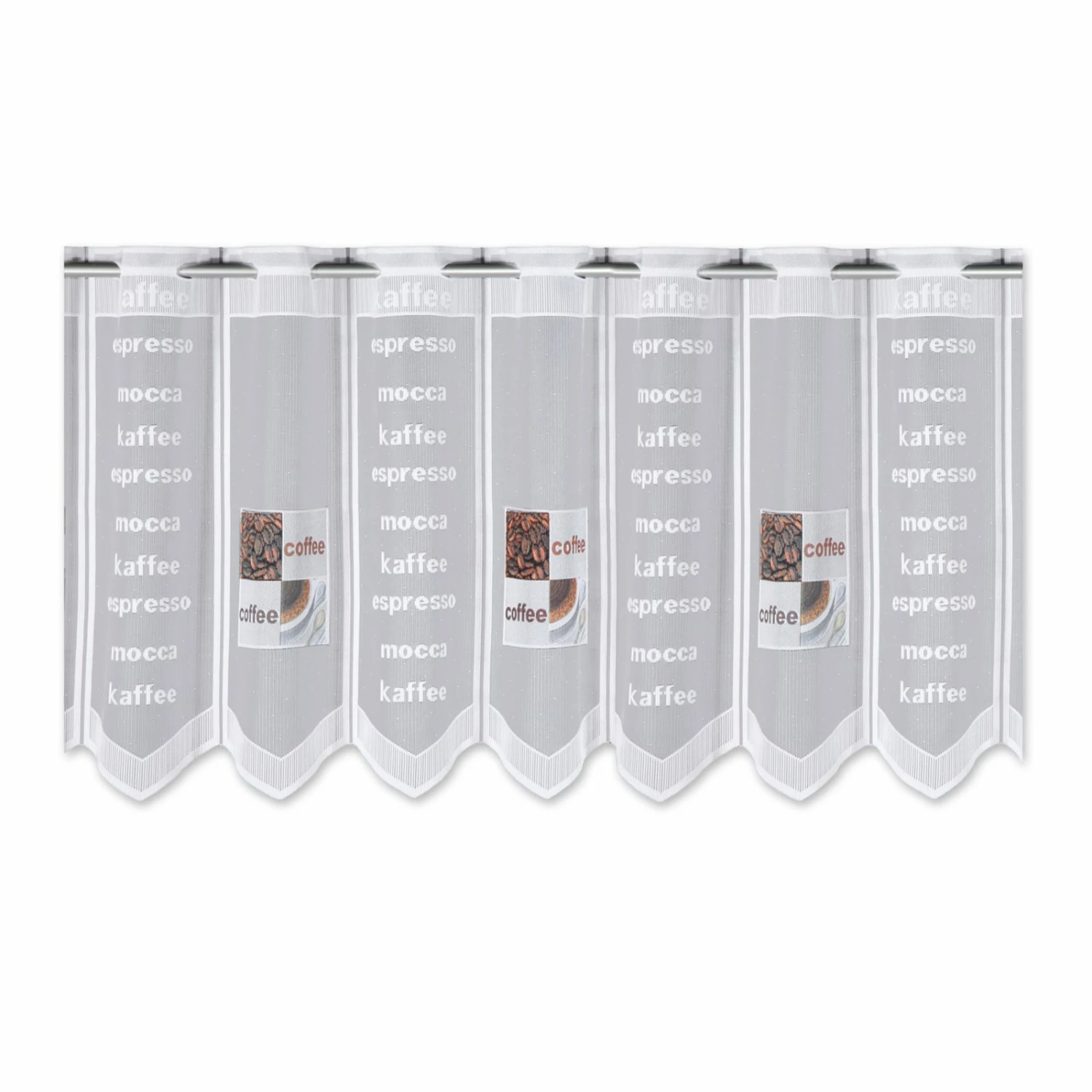 Diese Scheibengardine mit Café-Motiv ist das perfekte Accessoire für jede Küche. Holen Sie sich schickes Café-Flair in Ihre Küche mit dieser schönen Gardine.