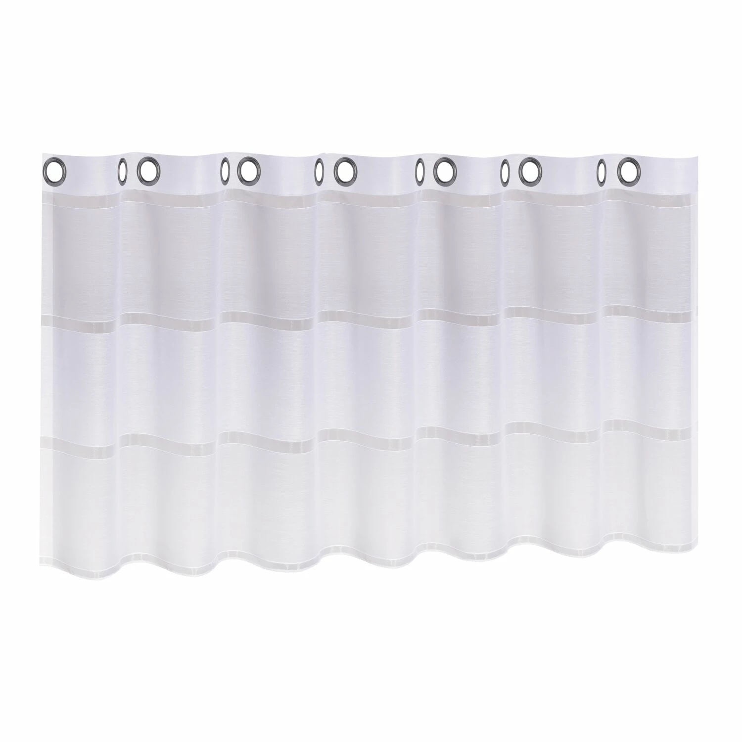 Diese weiße Scheibengardine wurde aus halbtransparenten Stoff mit Streifen-Design gefertigt. Durch das zeitlose Muster wirkt diese Gardine locker und gibt Ihrem Wohnraum einen ganz neuen Glanz.