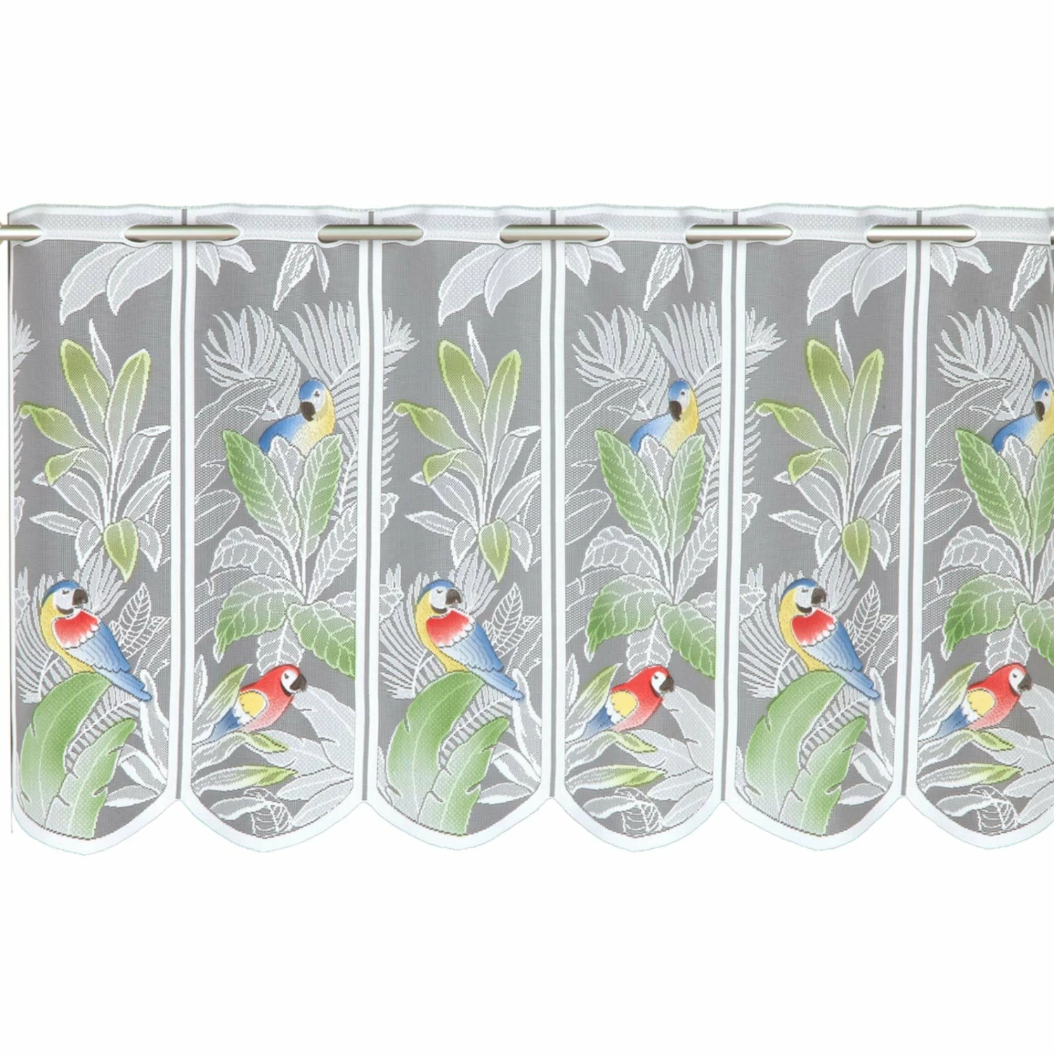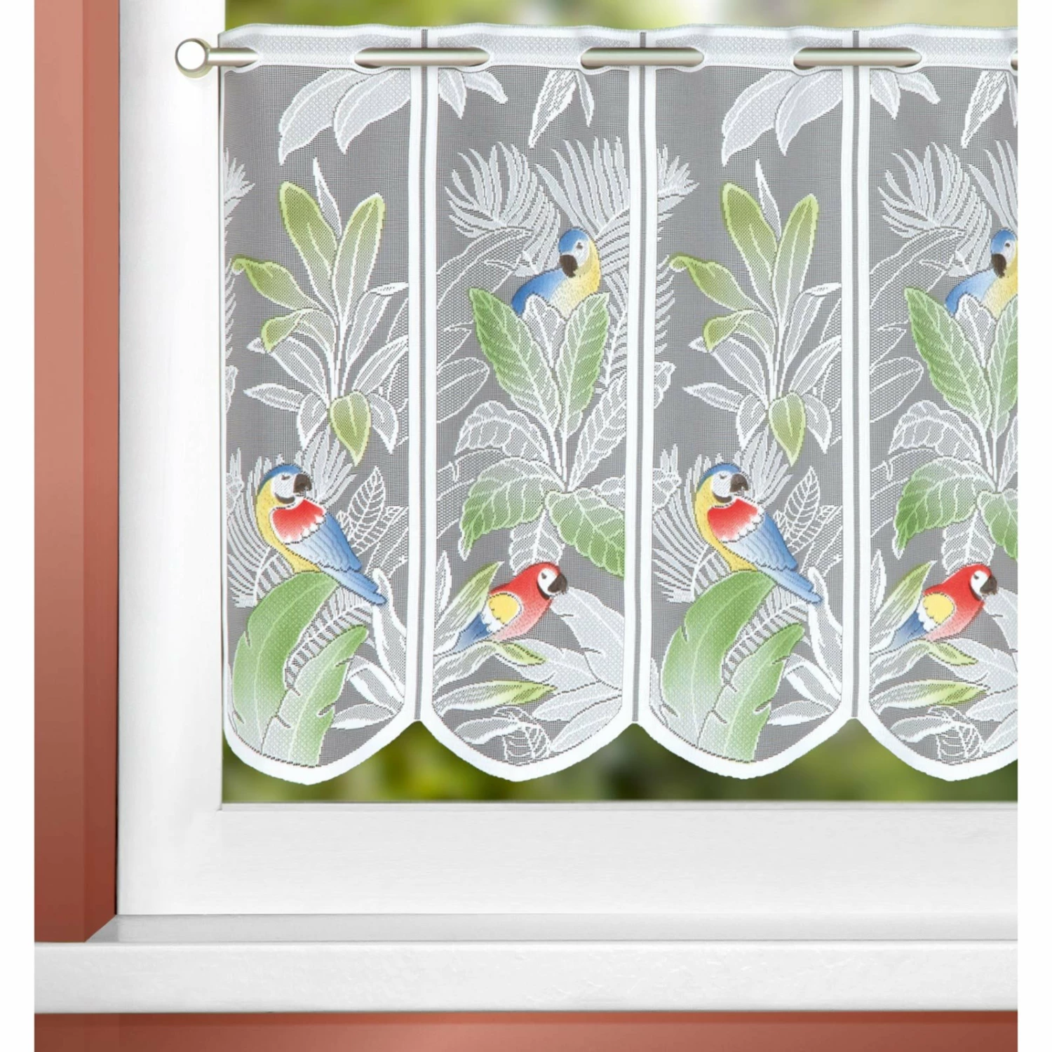 Diese farbenfrohe Scheibengardine mit Papageien-Motiv passt perfekt in jeden Raum – egal, ob Kinderzimmer oder Tier-Fan.