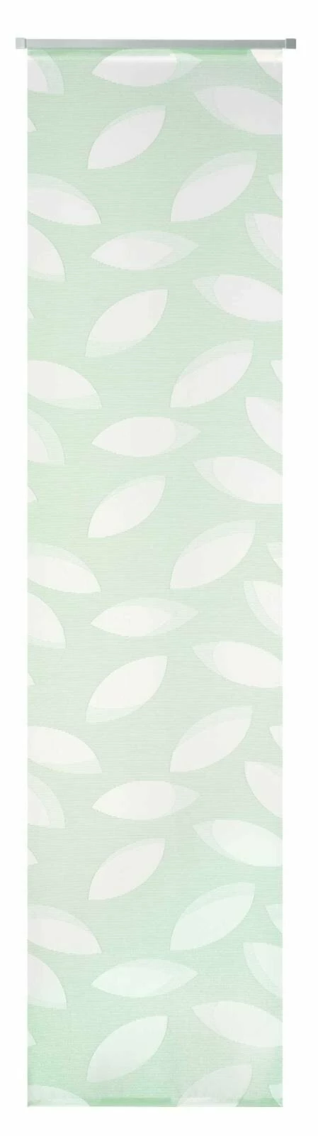 Schiebevorhang mit modischem Look. Hergestellt in einem aufwendigen Webverfahren gibt dem Vorhang eine Optik herabfallender Blätter. Geben Sie ihren Fenstern das gewisse Extra, indem Sie den Schiebevorhang an die mitgelieferte Schiene kletten.