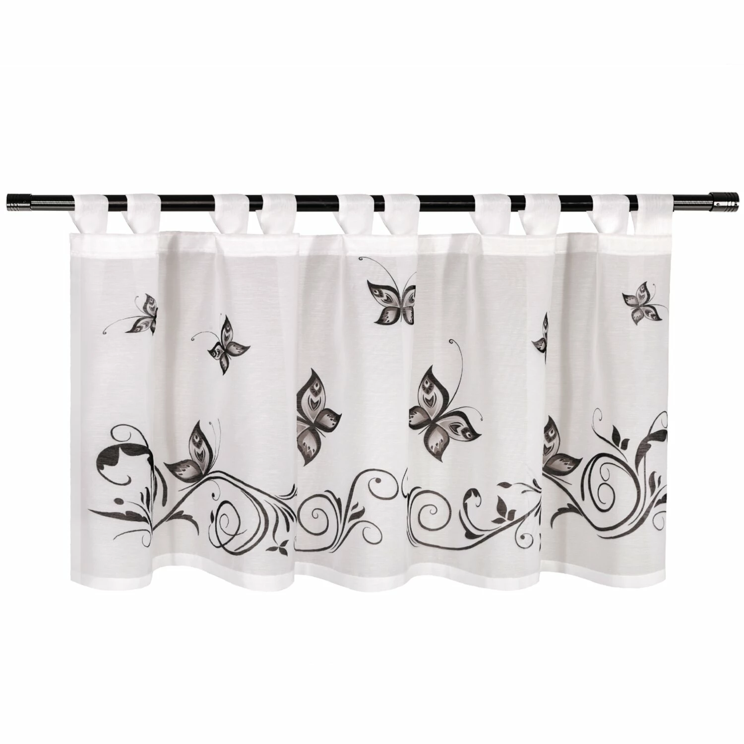 Schlaufen-Bistrogardine – weiß-schwarz – 140×50 cm