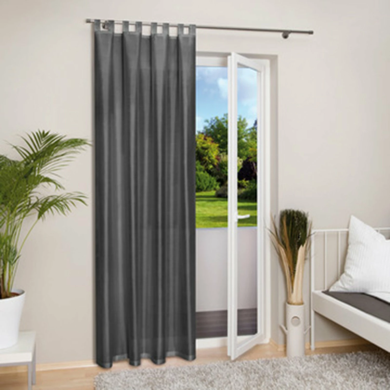 Stilvoller Schlaufenschal aus Taft-Stoff in einem schönen Graufarbton. Taft-Stoff ist ein schwerer und hochwertiger Stoff, welcher Robust und leicht lichtdurchlässig ist.