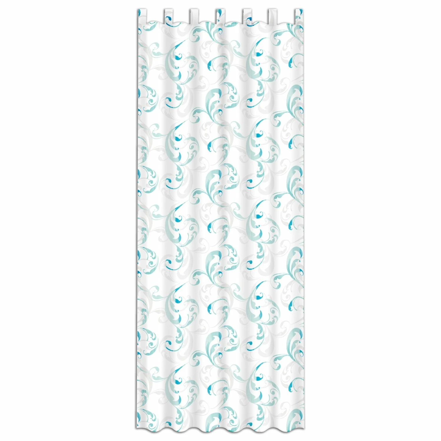 Verschlungene Ornamente in Mint machen diesen Schlaufenschal zu etwas besonderem. Auf der weißen Grundfarbe kommt der Farbton sehr gut zur Geltung und wird Ihren Fensterbereich aufwerten. Der Schal ist rundherum gesäumt, so dass er fertig zum Aufhängen bereits bei Ihnen eintrifft. Nutzen Sie ihn als Dekoelement oder um direktes Licht und Blicke von außen abzuschirmen.