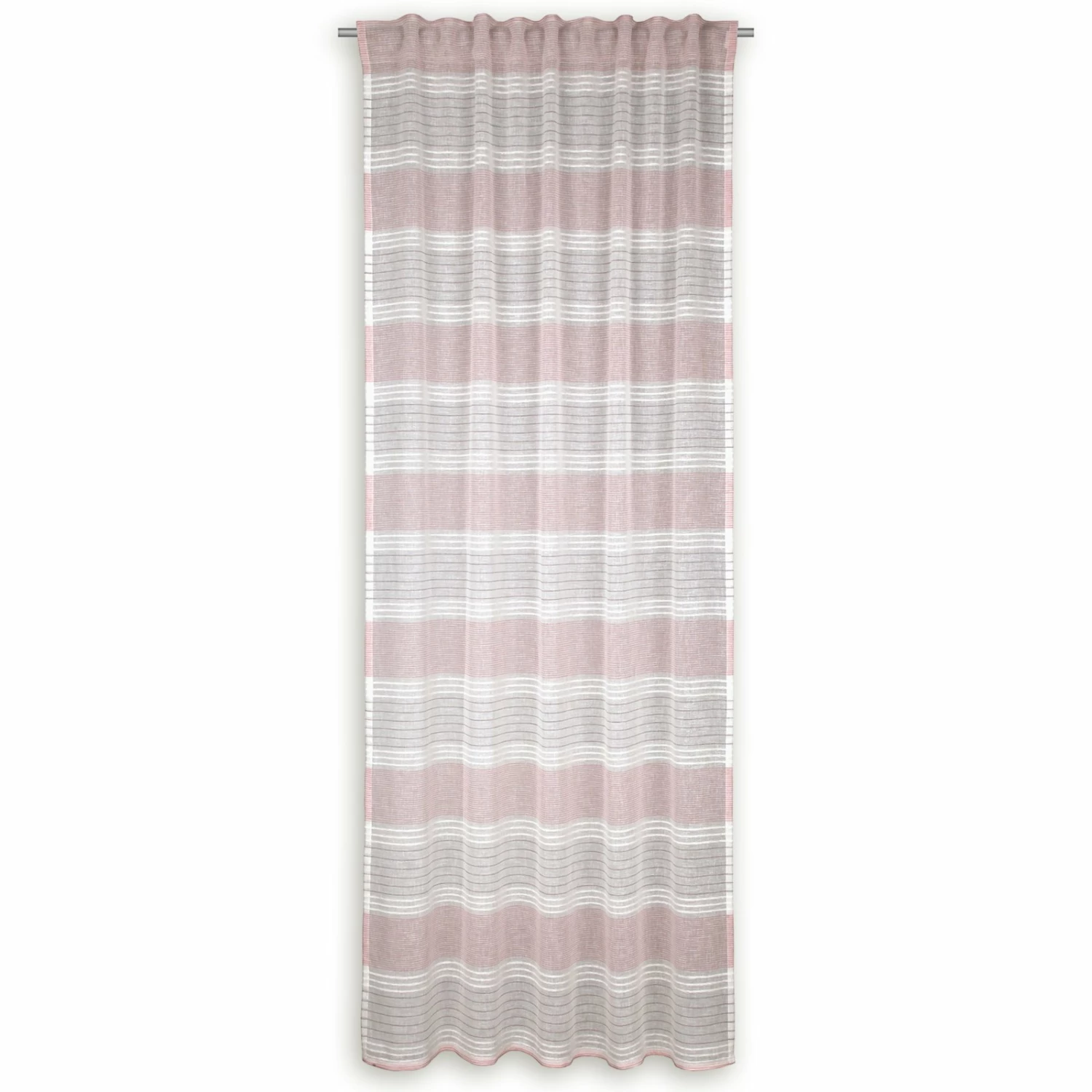 Wunderschöner Schlaufenschal mit zeitlosem Streifen-Motiv! Das zarte Rosa wird in Kombination mit dem Beige für ein wohnliches Ambiente in Ihren Räumlichkeiten sorgen. Dieses halbtransparente Wohnaccessoire ist 135 Zentimeter breit und misst in der Höhe etwa 245 Zentimeter.
