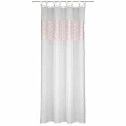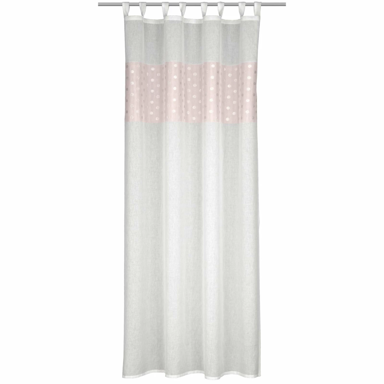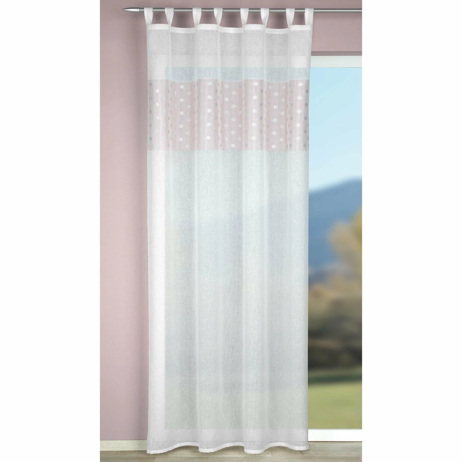 Moderner Schlaufenschal in Weiß-Rose, der ein angenehmes Wohnambiente in Ihrem Zuhause schaffen wird. Das Lurexgarn setzt nochmal glitzernde Akzente auf der farblichen Absetzung. Der Schal wird an Schlaufen aufgehangen.
