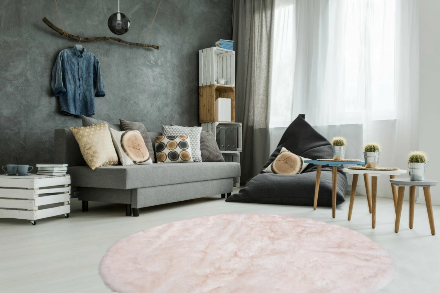 Die besonders flauschige Haptik des Tierfellimitat-Teppichs im Schaffell-Look besticht! Die Florhöhe beträgt etwa 55 mm, ist besonders weich und angenehem. Der Teppich mit einem Durchmesser von etwa 160 cm bringt unverzüglich Gemptlichkeit in den Raum und ist ein toller Blickfang. Der Teppich ist für alle Innenräume geeignet.