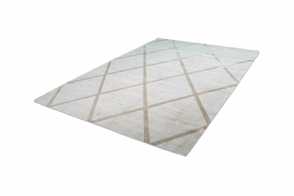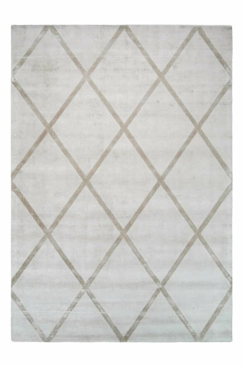 Die harmonisch abgestimmten Töne in Elfenbein und Taupe und der melierte Look des Teppichs verleihen Ihren Räumen ein besonderes Retro-Feeling. Der handgefertigte Teppich in stilsicherem Rauten-Design zieht alle Blicke auf sich. Die eleganten Strukturen dieses Teppichs fügen sich wunderbar in jede Wohnumgebung ein. Er ist einfach zu reinigen und fusselarm, sodass er ideal für Allergiker geeignet ist. Er ist für jegliche Bodenart tauglich und ist zudem für Böden mit Fußbodenheizung geeignet.